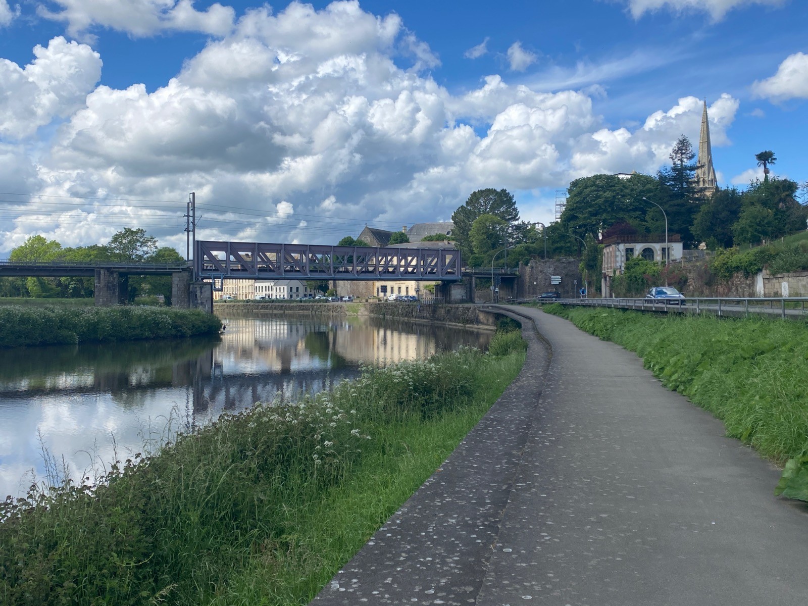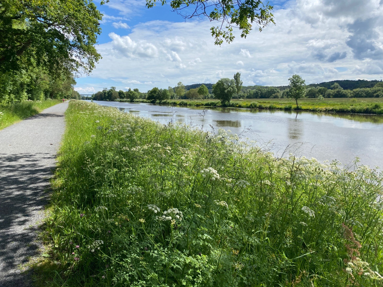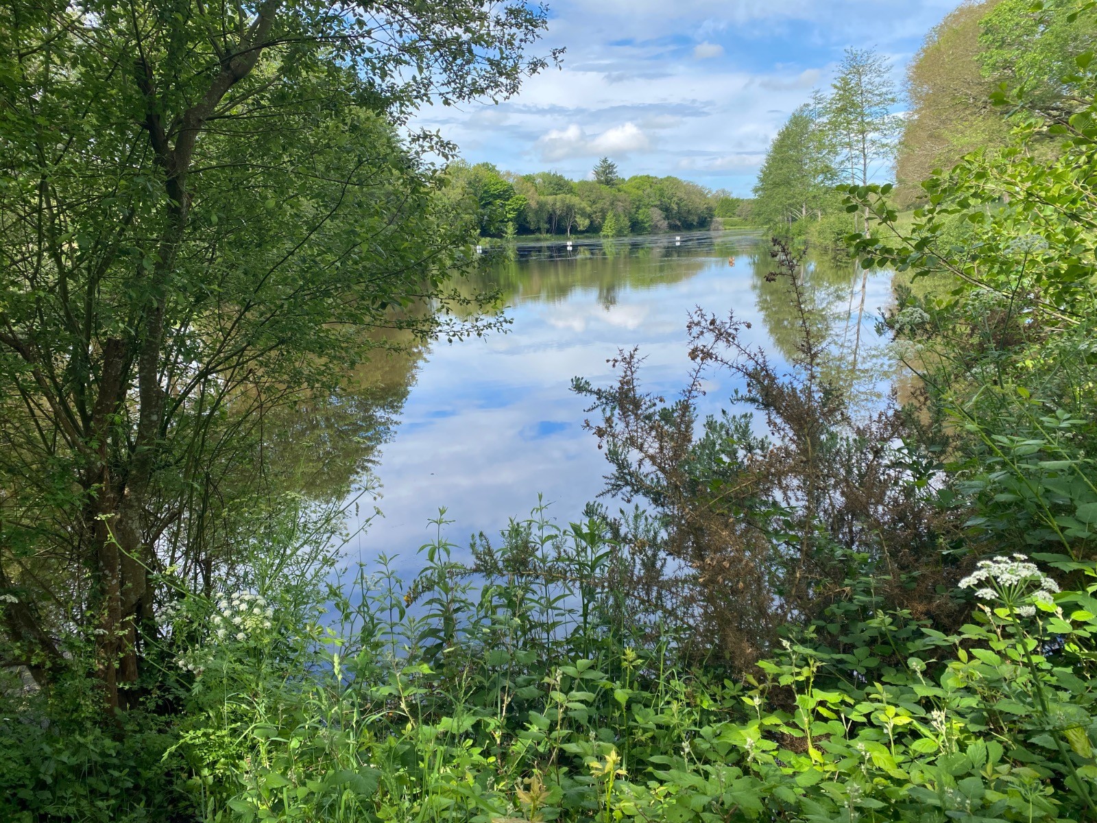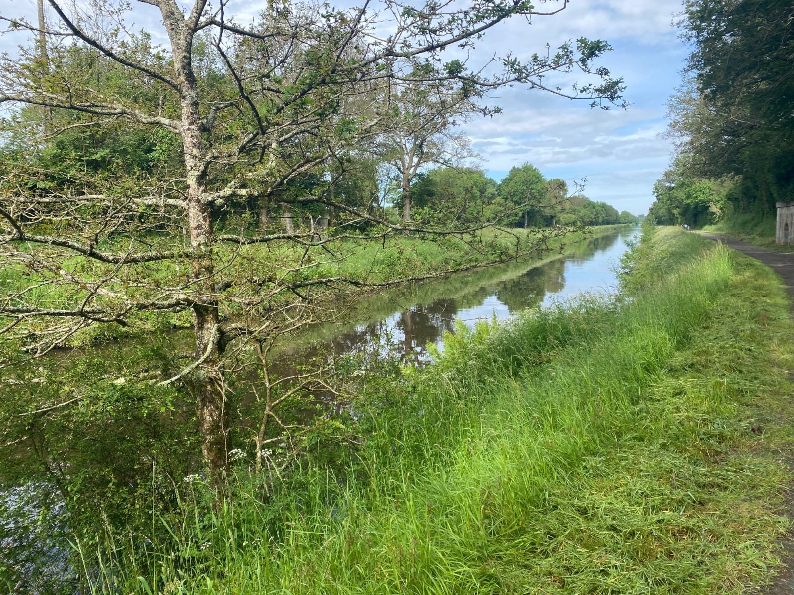 A votre gauche vous avez la route ( qui vient perturber la quiétude du lieu ) et le canal Nantes Brest.
