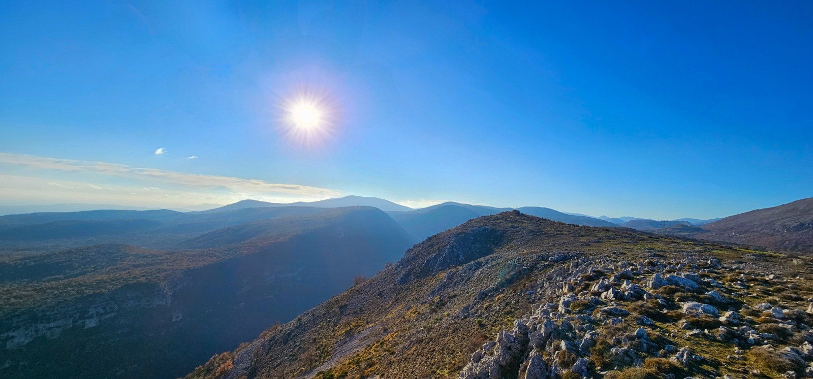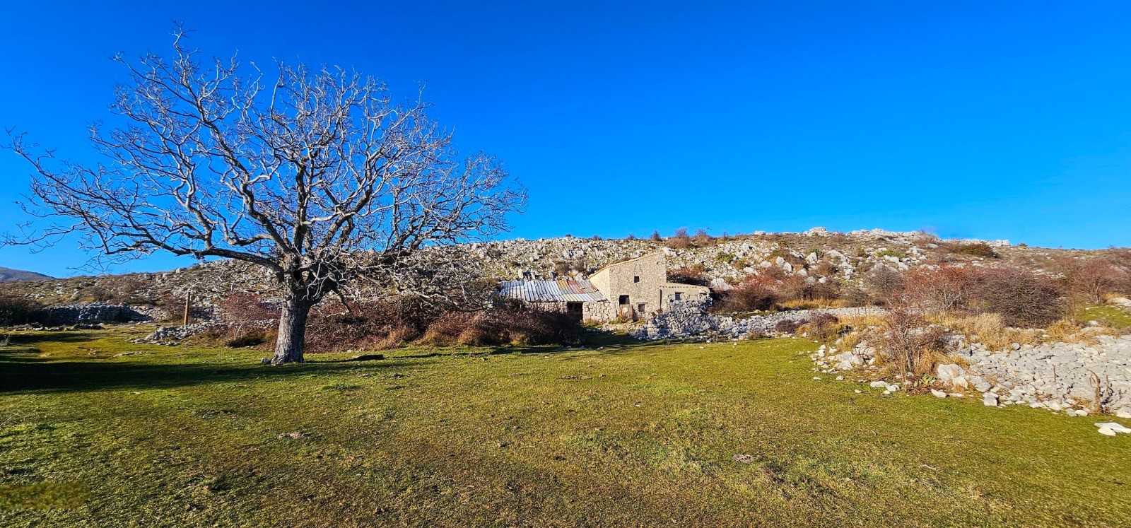 Plaisante phase retour au sein d'immenses étendues longeant une ligne de crête jusqu'à la Colle de Menon qui délimite le plateau suivi jusqu'alors. Points particuliers avec une belle bergerie en ruine et son arbre remarquable au km 13,62 et zone dépierrée servant d'aire de pacage en deçà de la Colle du Menon. Retour aisé avec multiples chemins rejoignant la zone de départ.