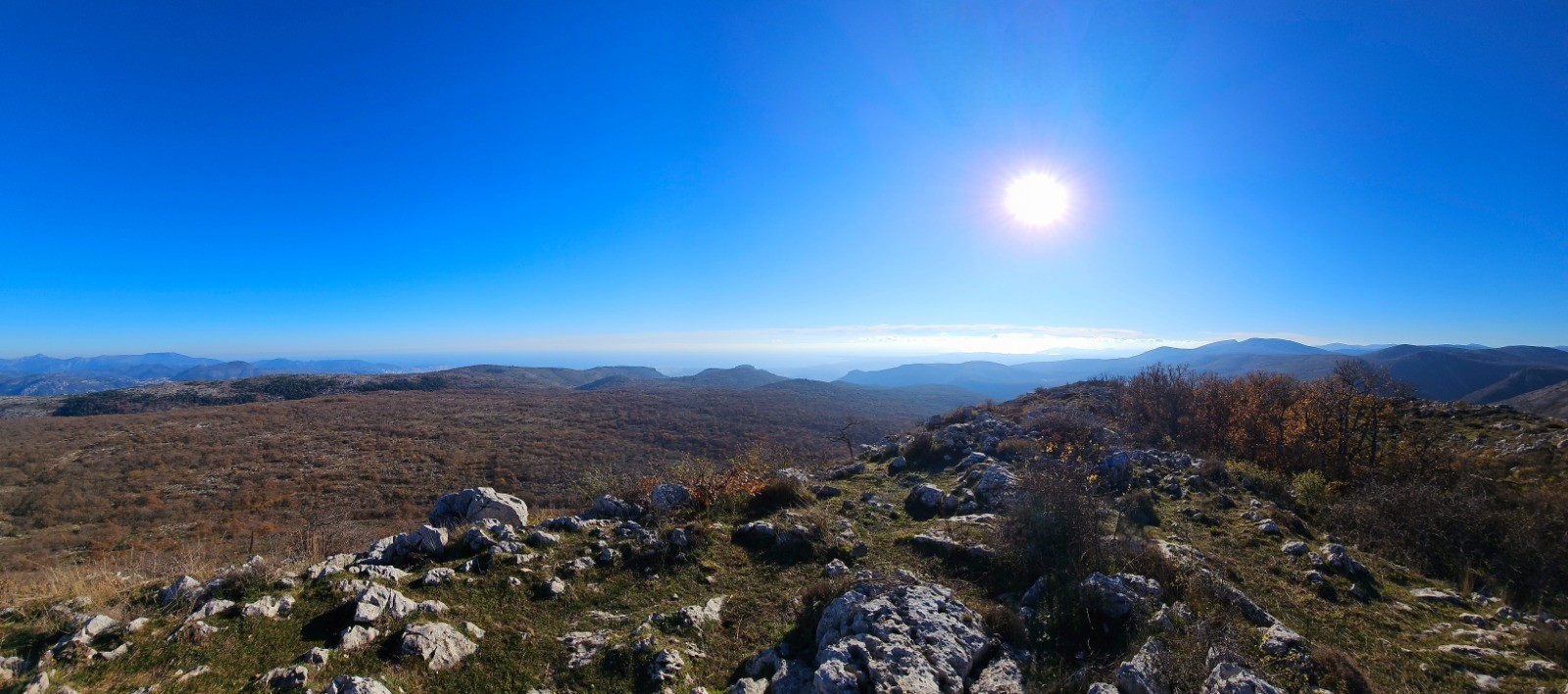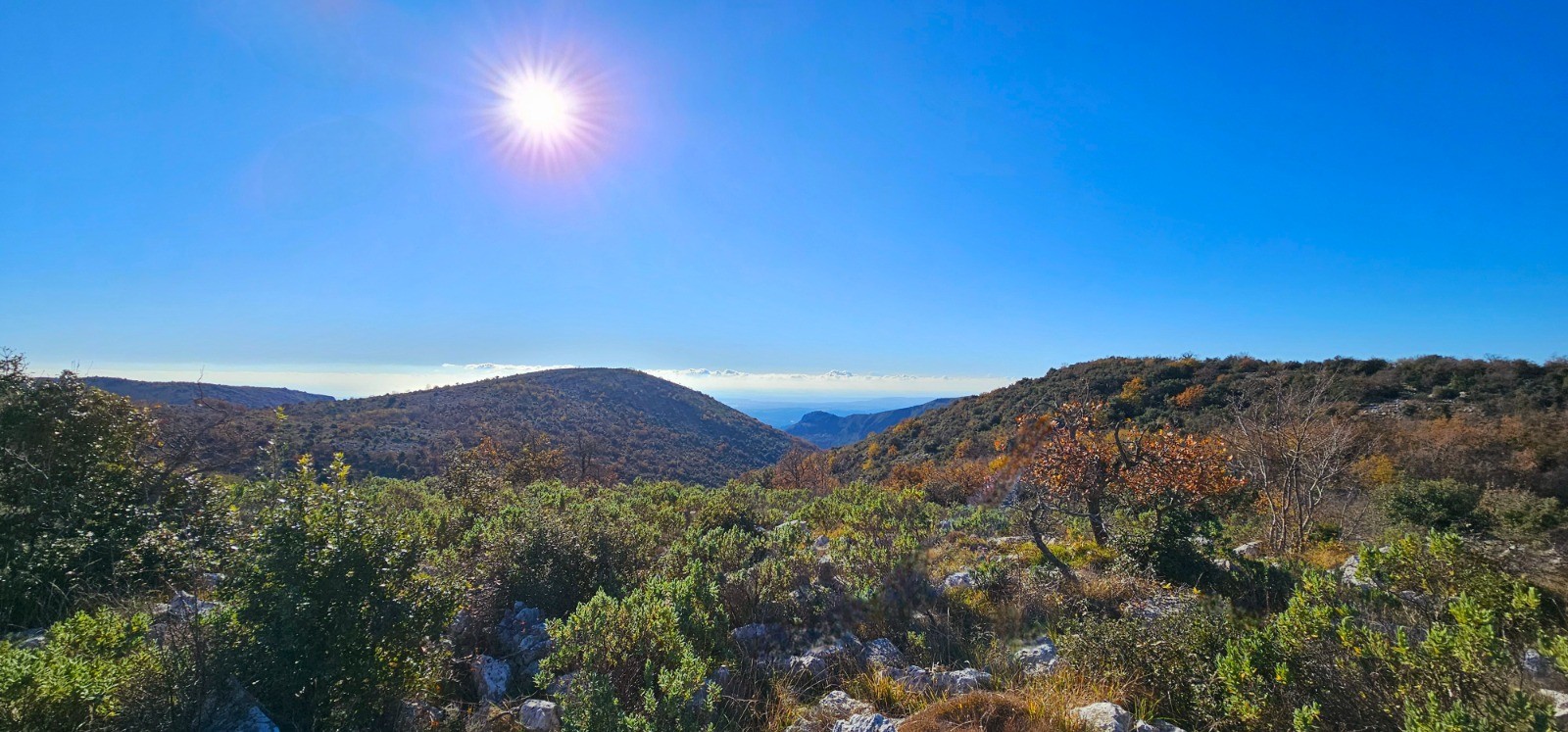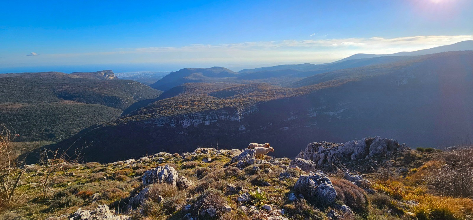 Conclusion : agréable sortie hivernale ciblant 2 cimes débonnaires du bas pays offrant néanmoins une magnifique et surprenante vue panoramique sur les massifs environnants et sur la partie littorale. Progression facile par PR jusqu'au Mouton d'Anou avec accès libre vers la Colle de Menon en longeant la partie sud du plateau dominant le vallon de La Cagne.