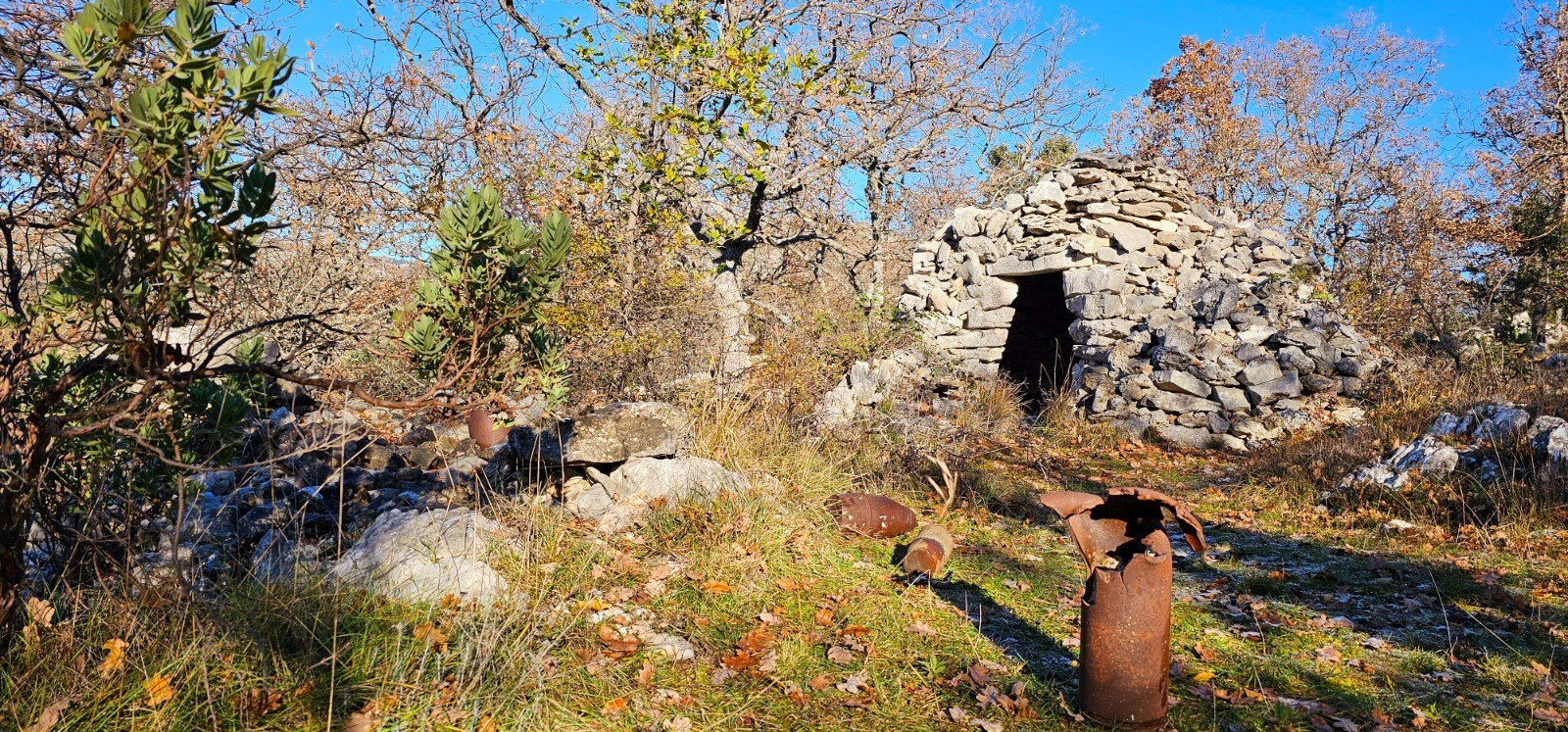 Montée progressive sans difficulté jusqu'au sommet du Mouton d'Anou à partir de la B 79 par forêt de chênes verts. Point particulier avec borie au km 6,41 vers lieu-dit "Le Cerisier" avec fragments d'obus explosés disposés aux abords.