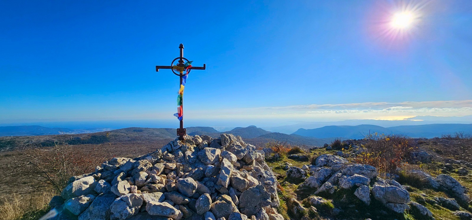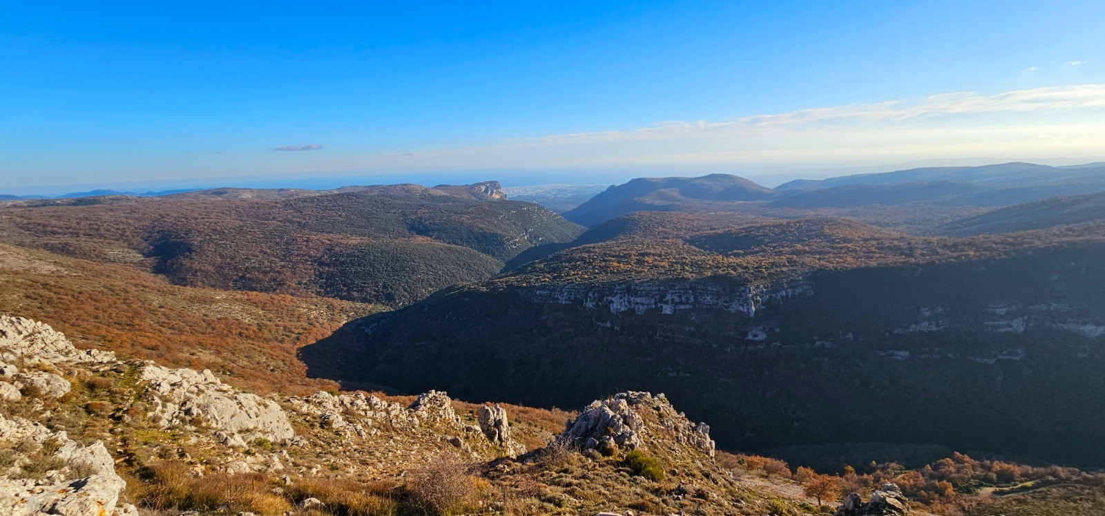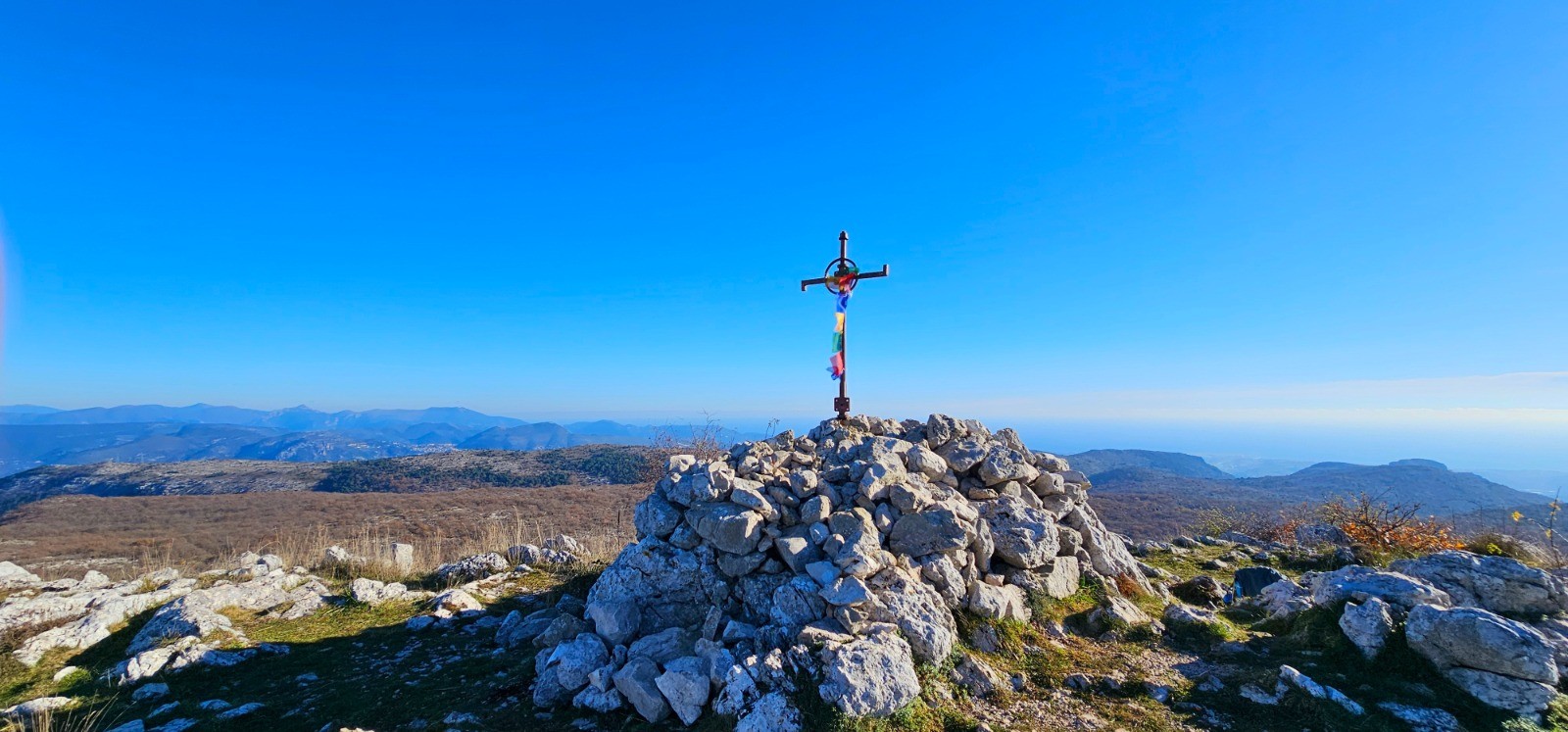 Superbe vue depuis sommet (+ cairn secondaire à proximité) avec magnifique panorama sur la partie littorale et sur le Baou de Saint-Jeannet.