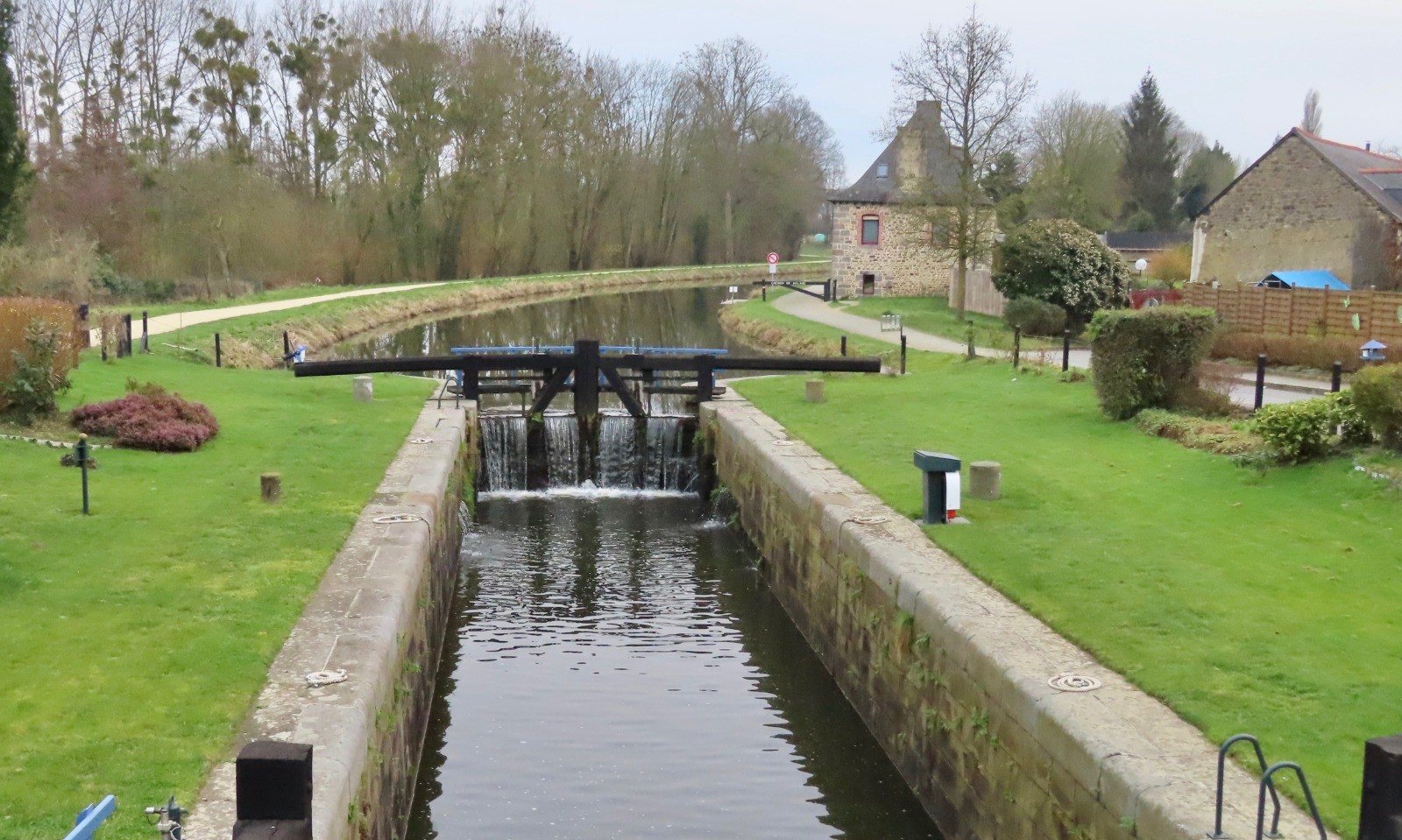 Prendre le chemin de halage sur la rive droite, traverser le canal à la Moucherie et poursuivre dans la même direction jusqu'à la Maison Neuve aux Anglots. Traverser le ruisseau de la Donac et suivre le balisage vers Saint-Méloir, Placis Saint-Joseph, Rouyon et l'Ecoutel vers la forêt de Tanouarn. Se diriger ouest vers le Grand Châtelain et quitter le sentier au carrefour sur la D795. Longer la forêt de Québriac puis après la D20 suivre le balisage du circuit de l'étang des Noës vers le bourg de Québriac et le canal. Fin de parcours sur la rive gauche du canal et le musée de l'Outil et des Métiers d'autrefois.Les circuits de Tinténiac : www.visugpx.com/z5rsgIjdm0