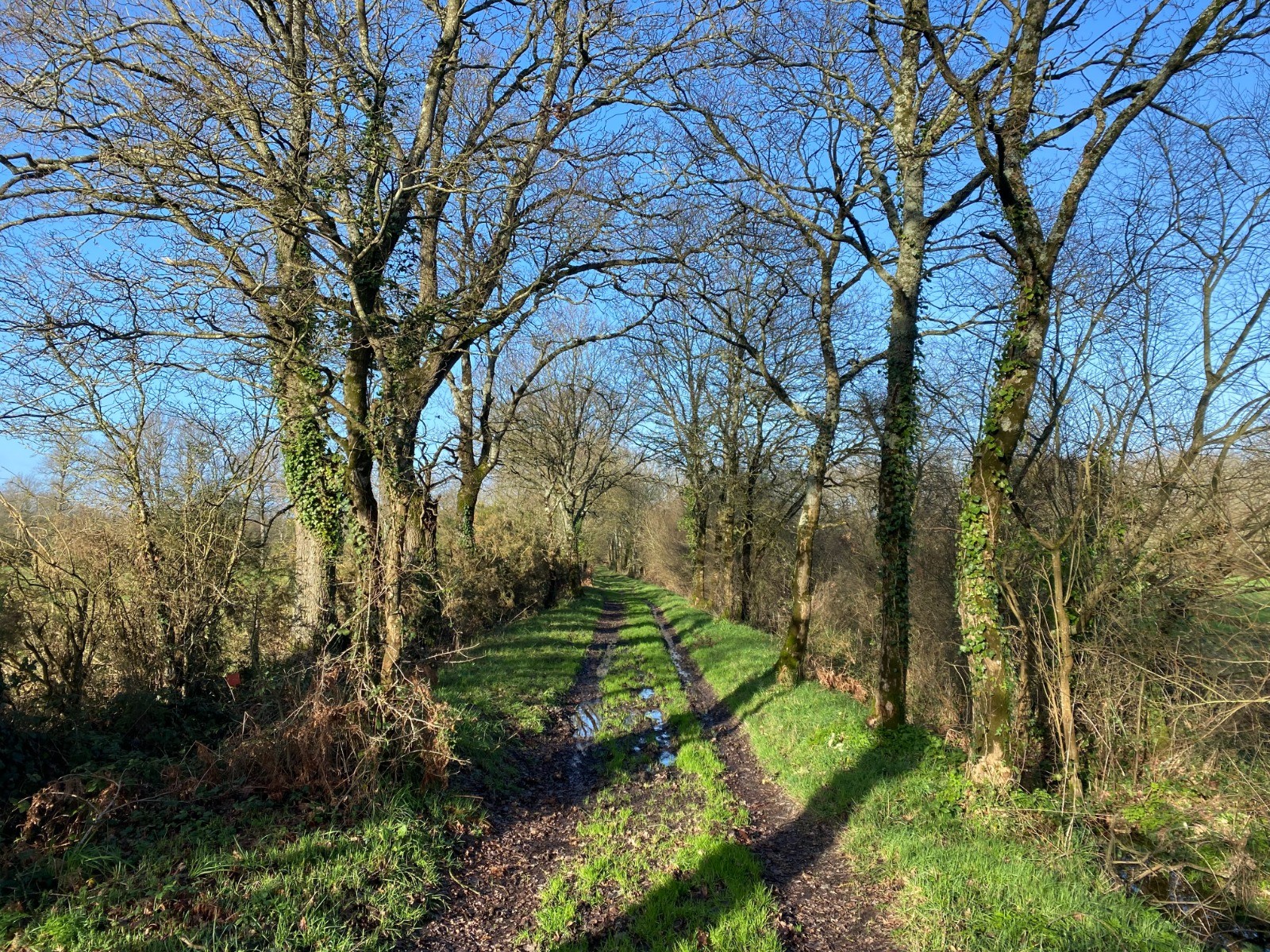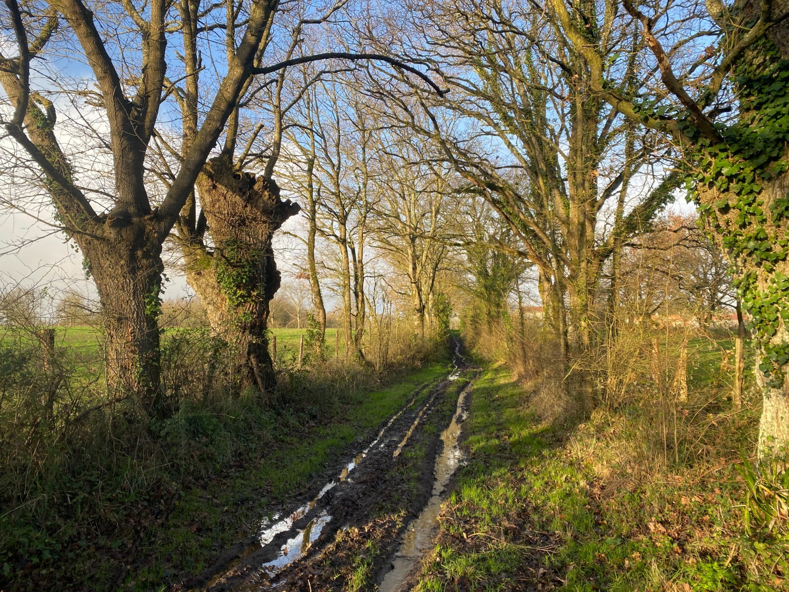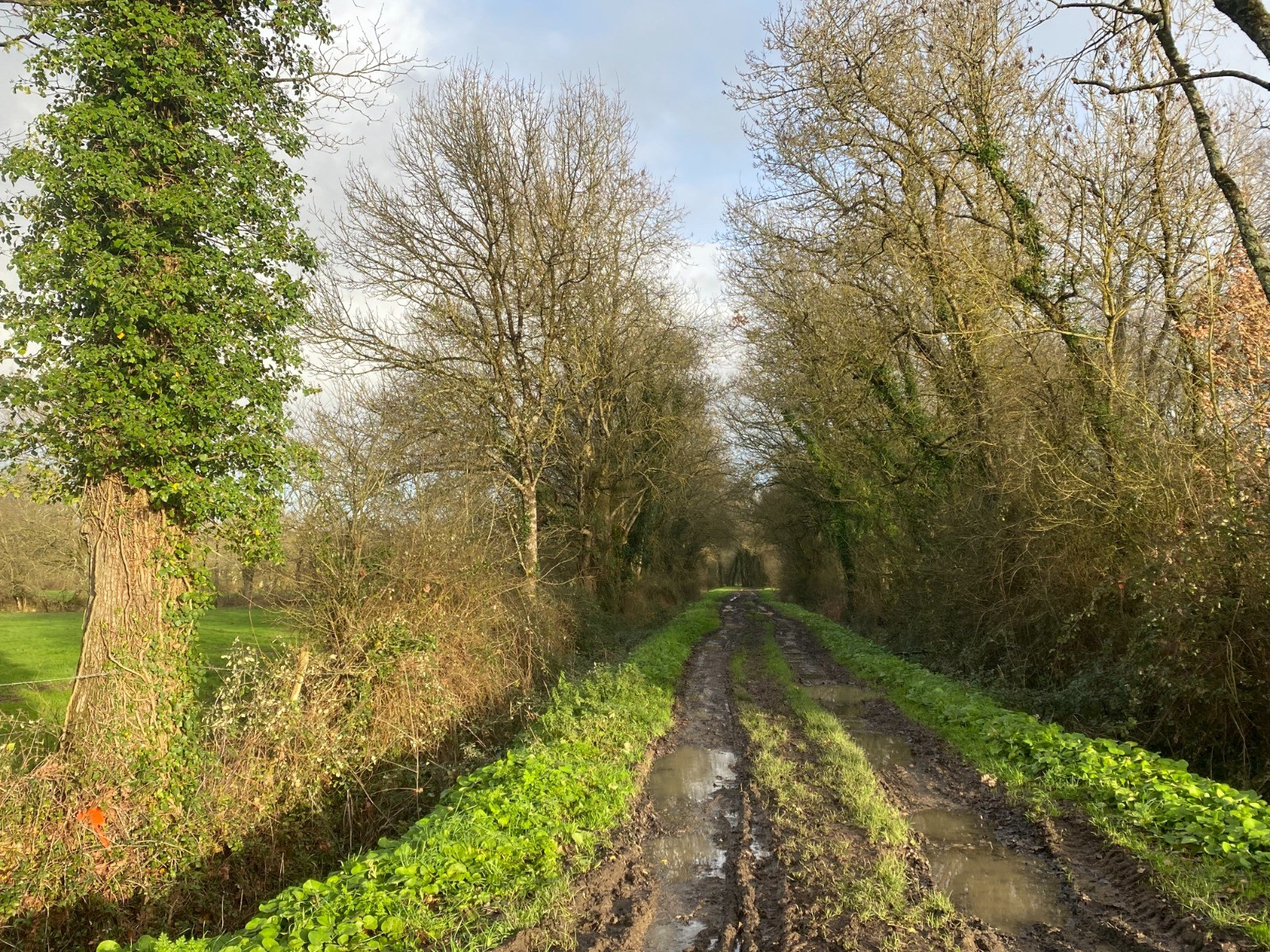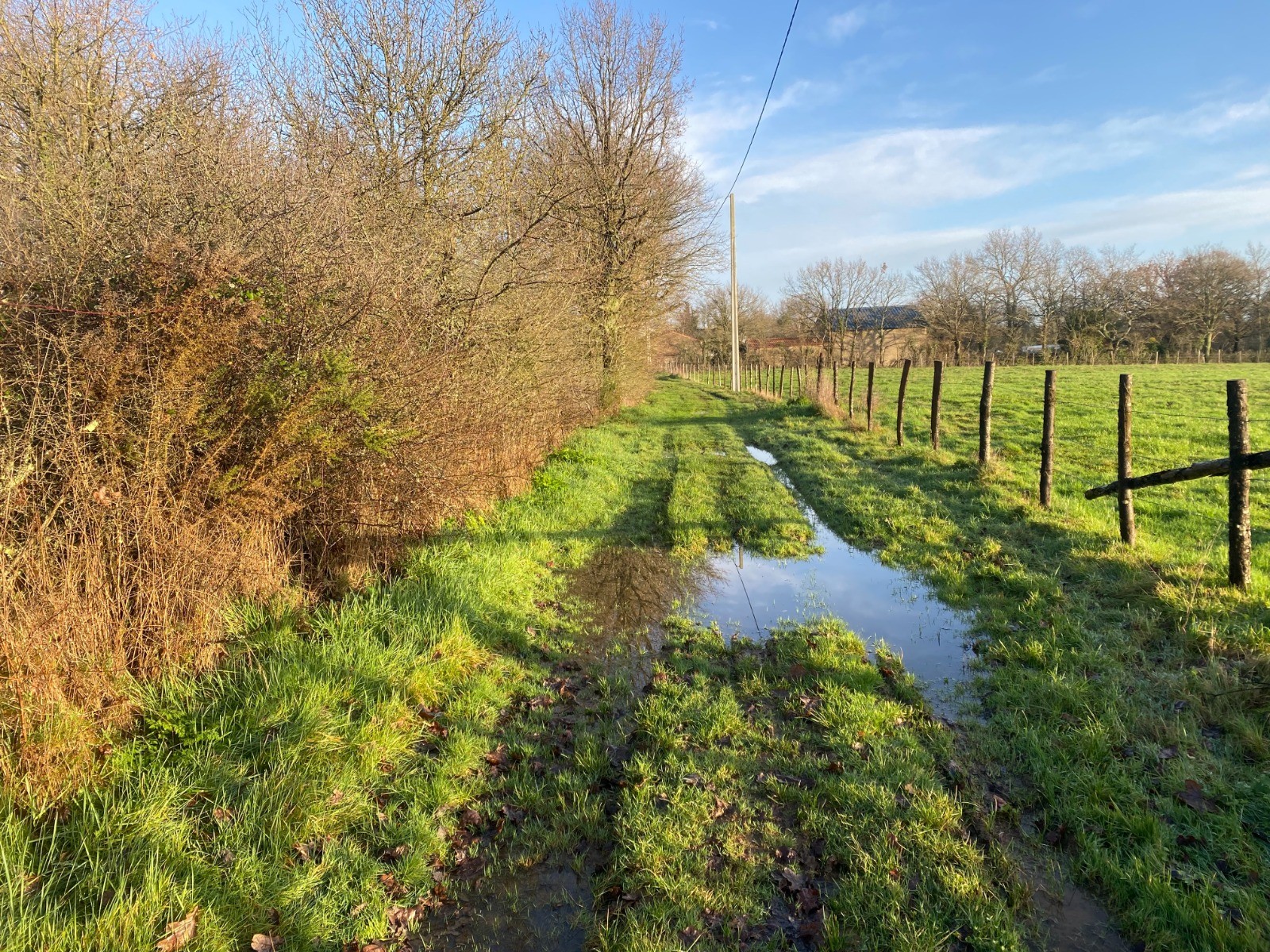 Ensuite nous allons retrouver un chemin très étroit, en pente douce où coule l’eau à défaut de fossés.