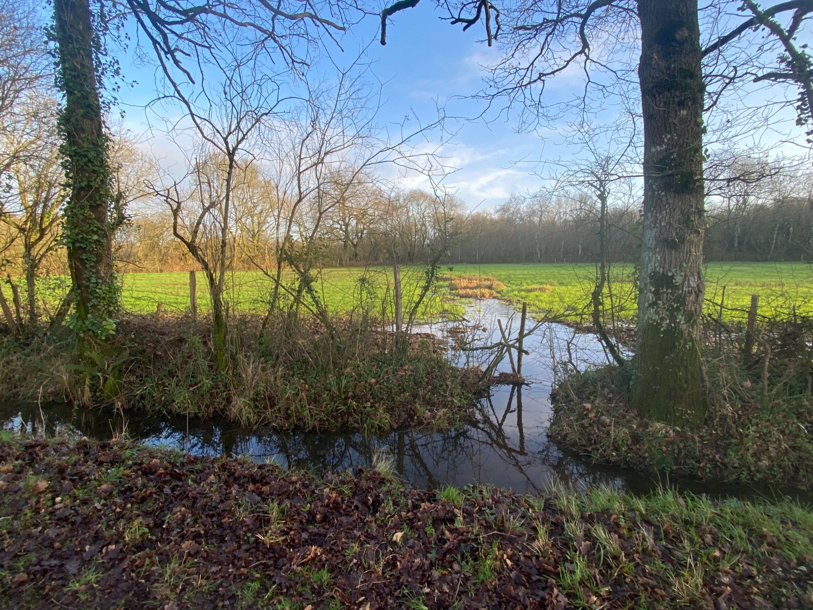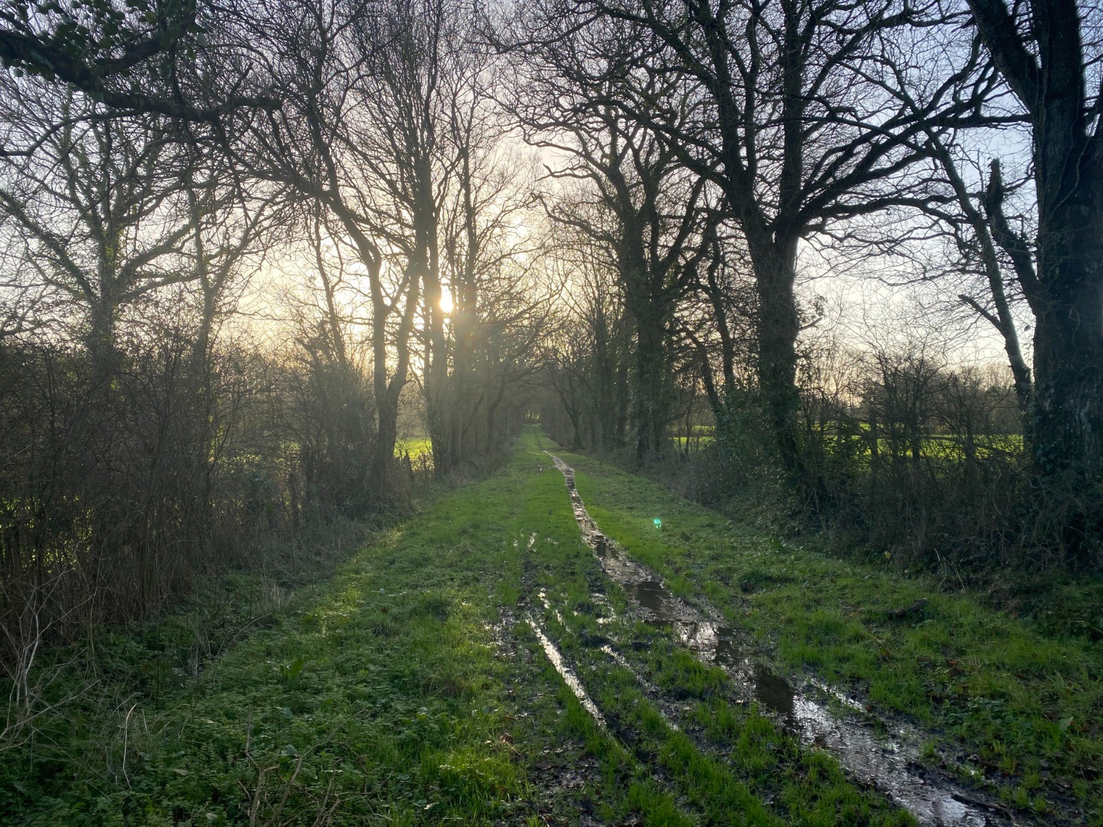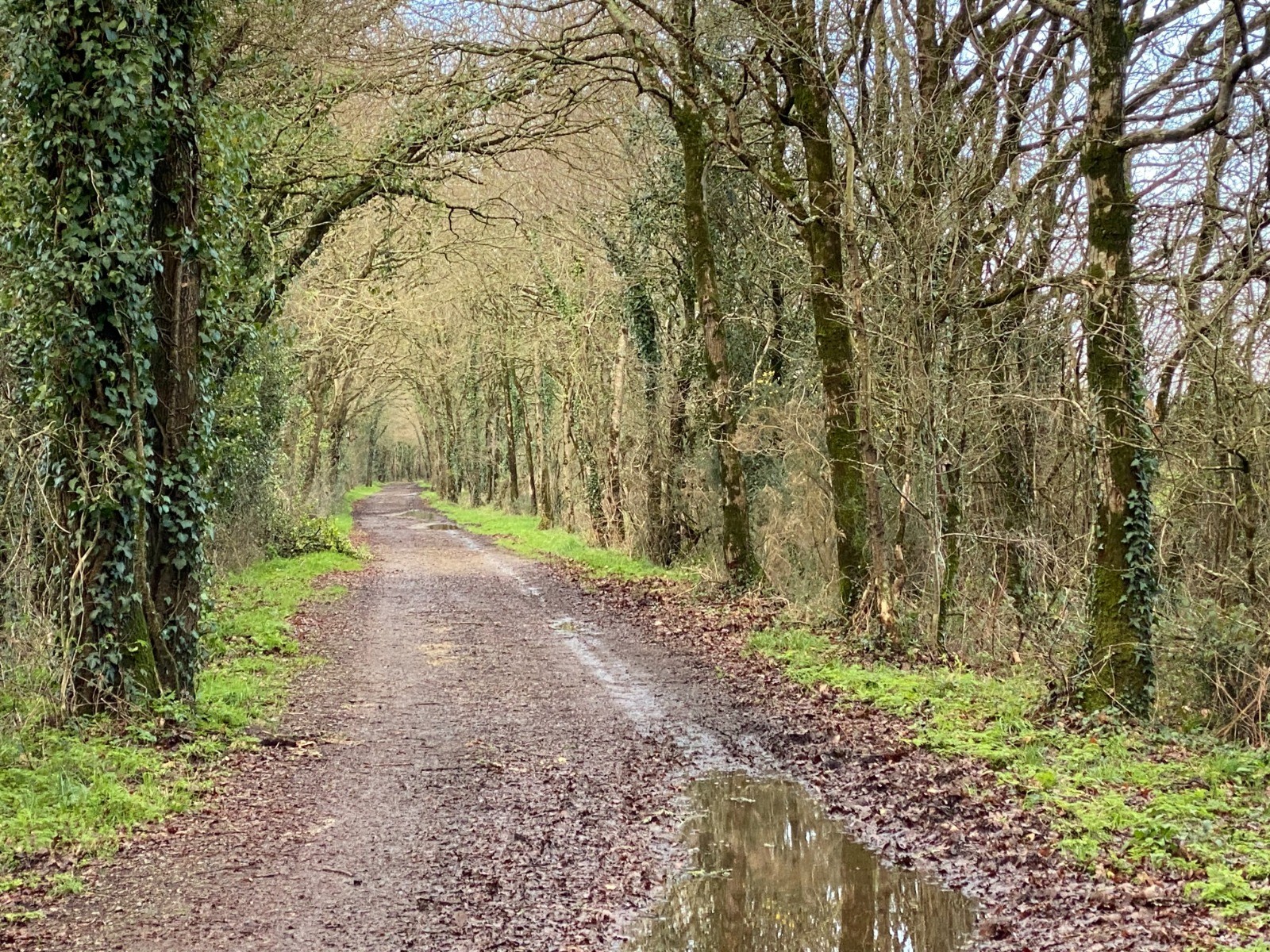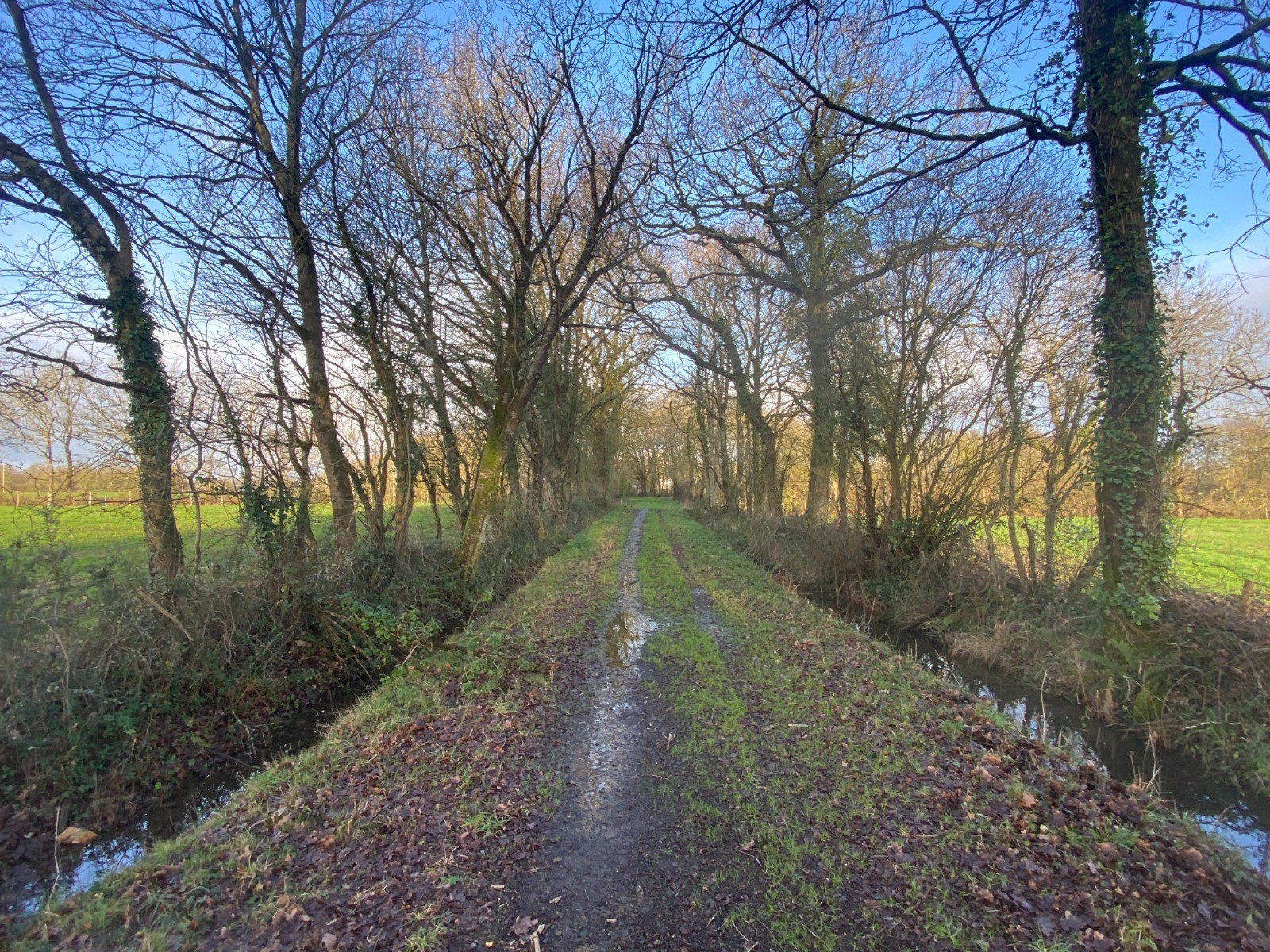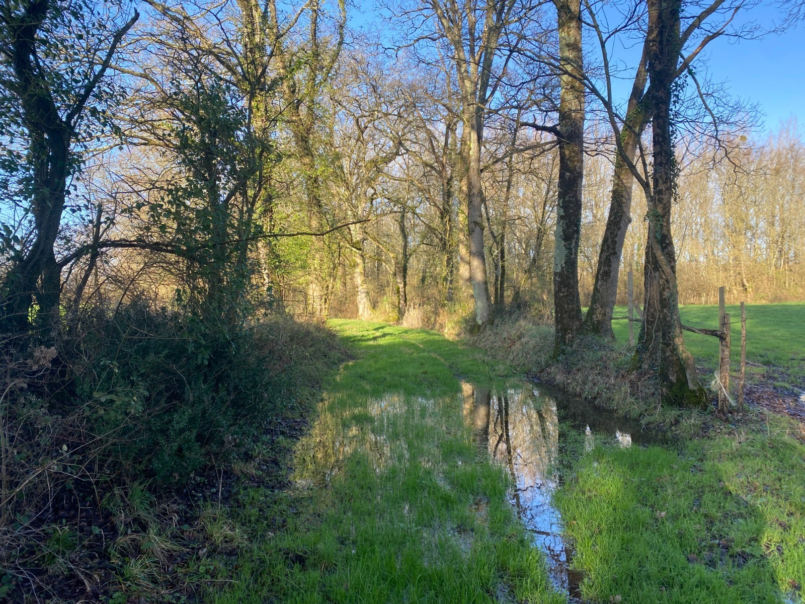 Ensuite nous allons retrouver un chemin très étroit, en pente douce où coule l’eau à défaut de fossés.