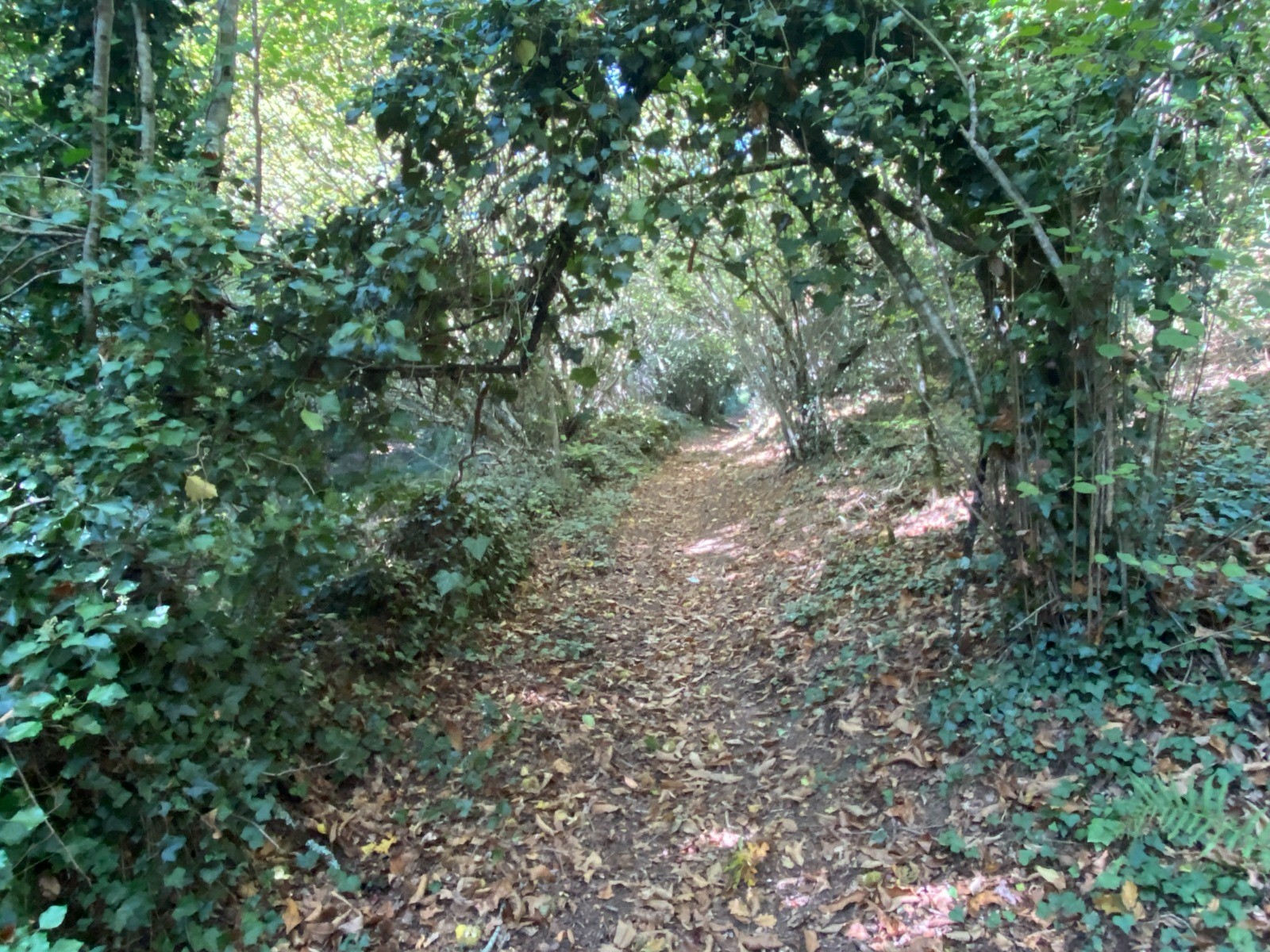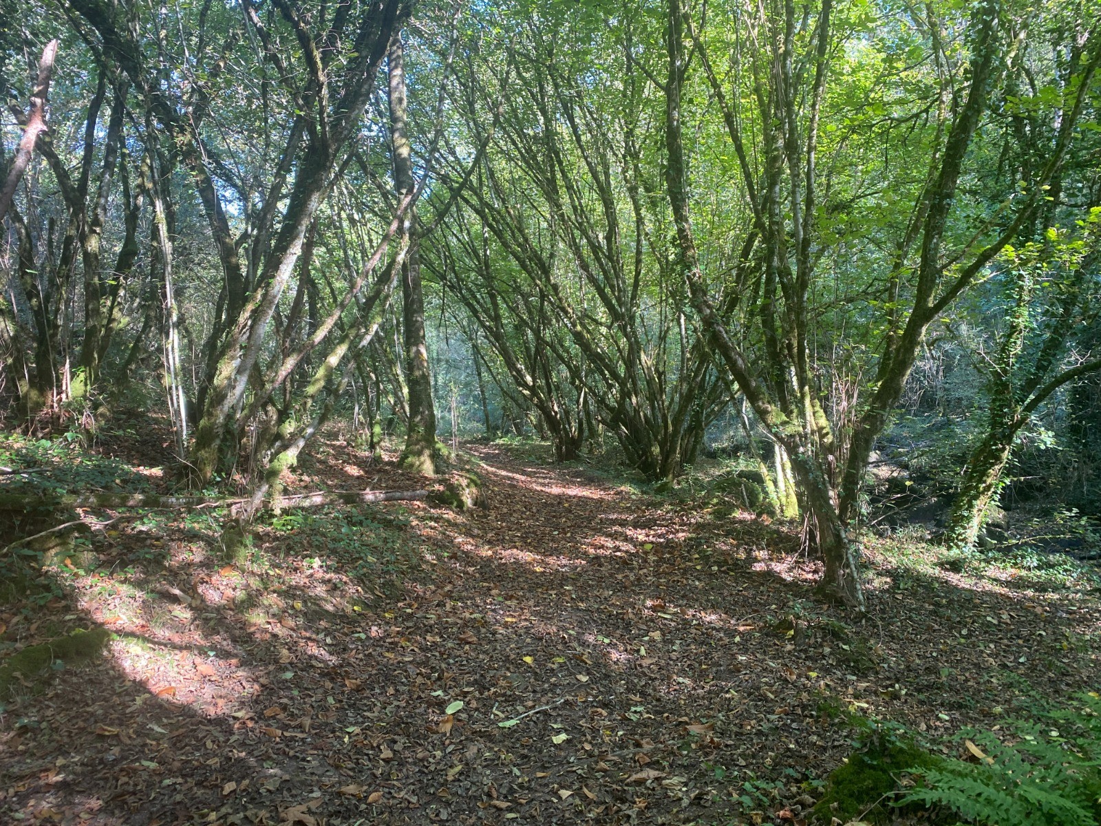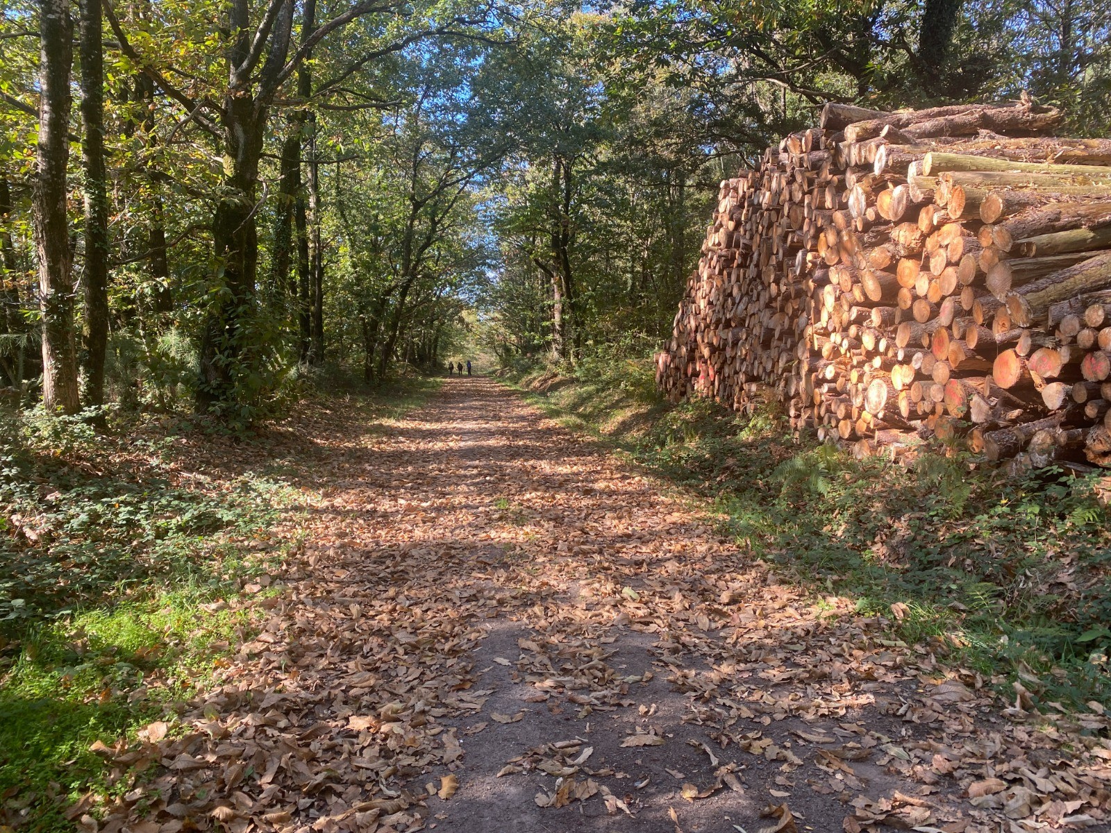 Kilomètres 11 à 12 : De nouveau, un très beau chemin forestier, où nous marchons sur les châtaignes tant les châtaigniers sont nombreux.