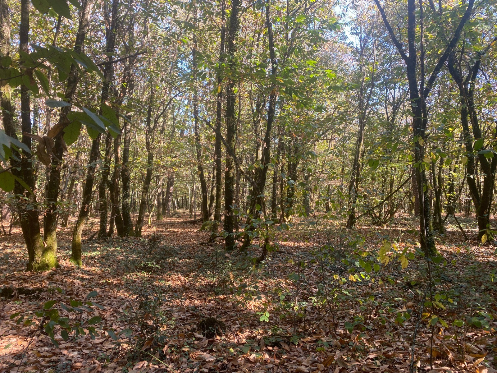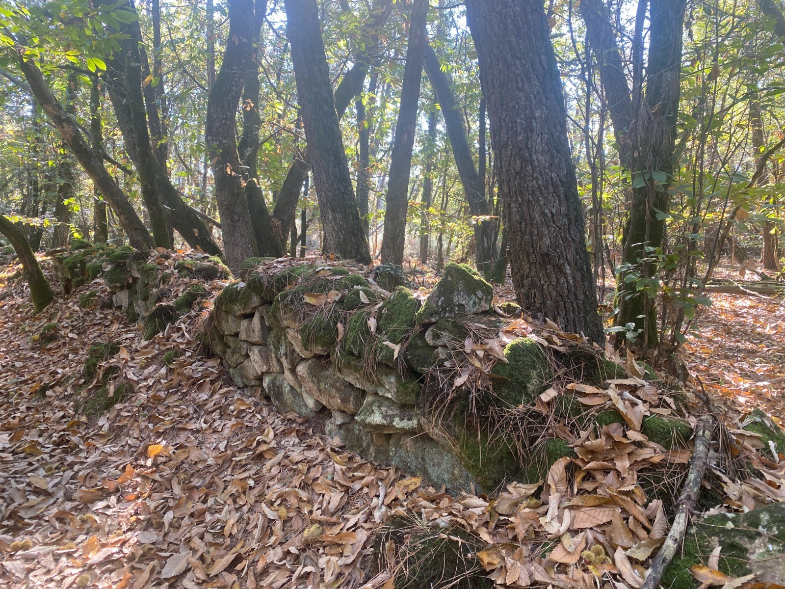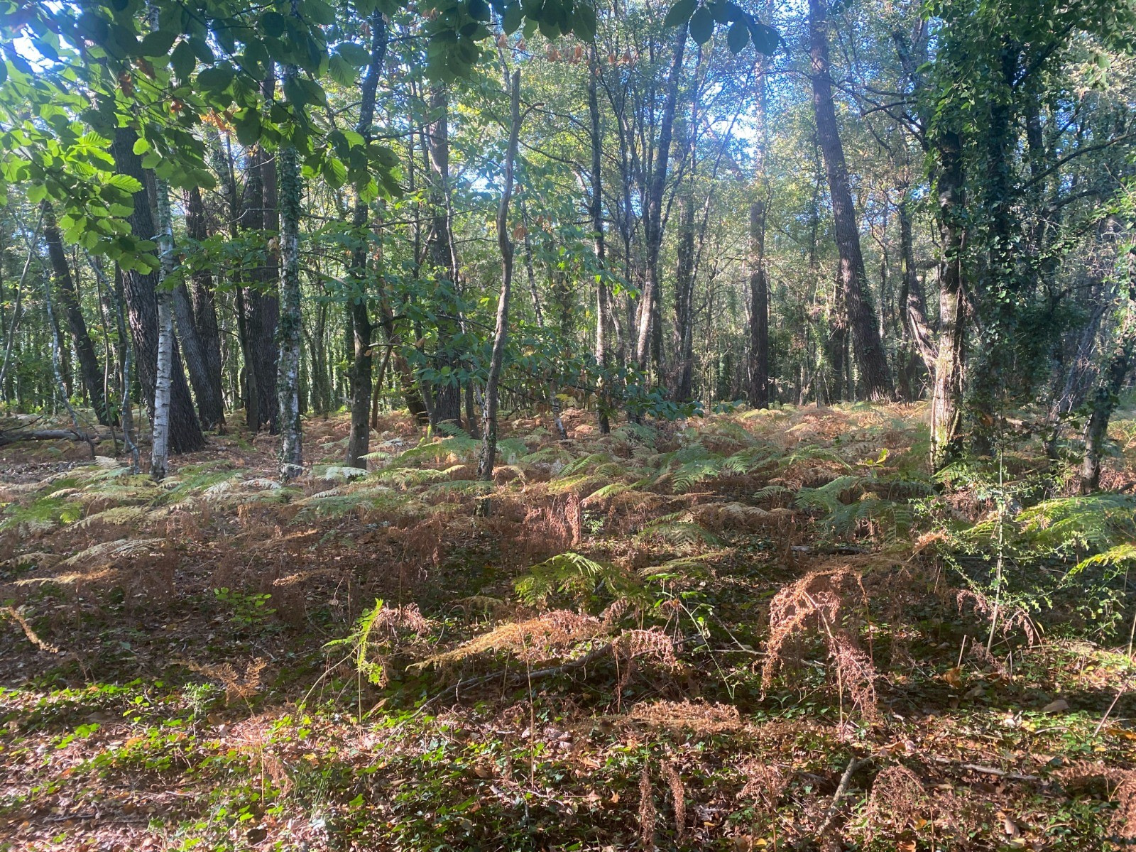 Kilomètres 11 à 12 : De nouveau, un très beau chemin forestier, où nous marchons sur les châtaignes tant les châtaigniers sont nombreux.