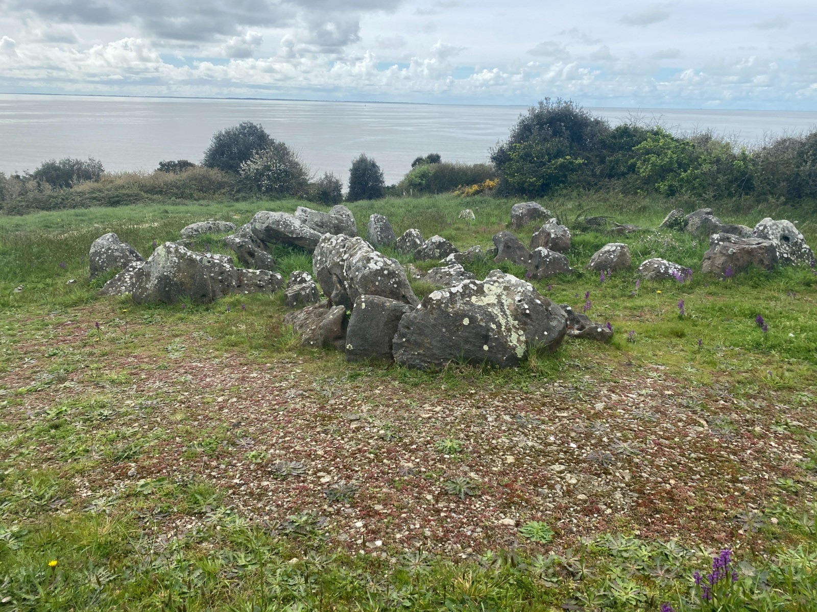 "Ce monument, également est constitué de blocs de grès épars et de dalles en place délimitant assez nettement ses différentes parties.