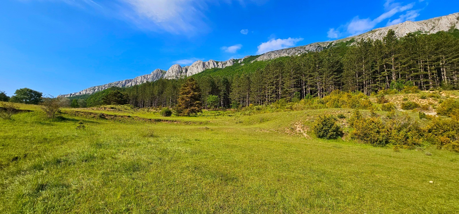 Descente constante sur 4 km avec de multiples possibilités de s'approvisionner en eau, sur la place centrale du village de Majastres situé sous le col (très belle fontaine + point de vue) ainsi qu'aux nombreux gués précédant la magnifique prairie de la Doubuge. Commence alors une longue montée progressive de 4,5 km par une piste traversant l'admirable forêt domaniale du Montdenier, avant d'arriver au beau Col de la Mort de l'Homme qui constitue le point haut de cette rando à 1344 m. Nouvelle descente sur 6,32 km pour arriver à la zone de bivouac avec un seul point d'eau sur cette portion d'itinéraire, à la source alimentant l'étang de Mayaiche (km 25,50).