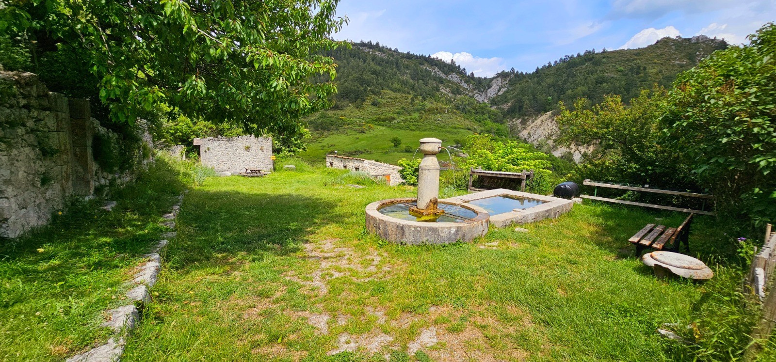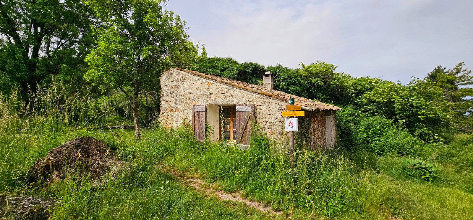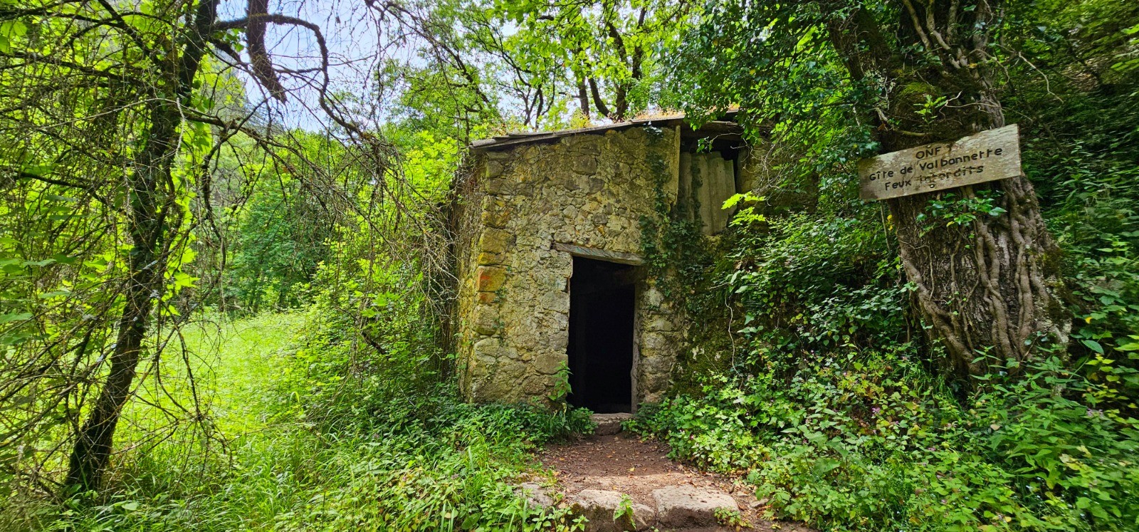 - Seule phase en A/R (2X 0,80 km) depuis le km 29 en suivant la direction de l'ancien "gîte de Valbonnette", pour accéder à cet édifice délabré pouvant néanmoins constituer un abri sûr en cas d'intempérie. Beau site de bivouac à proximité, sur grande planche herbeuse en bordure de torrent.