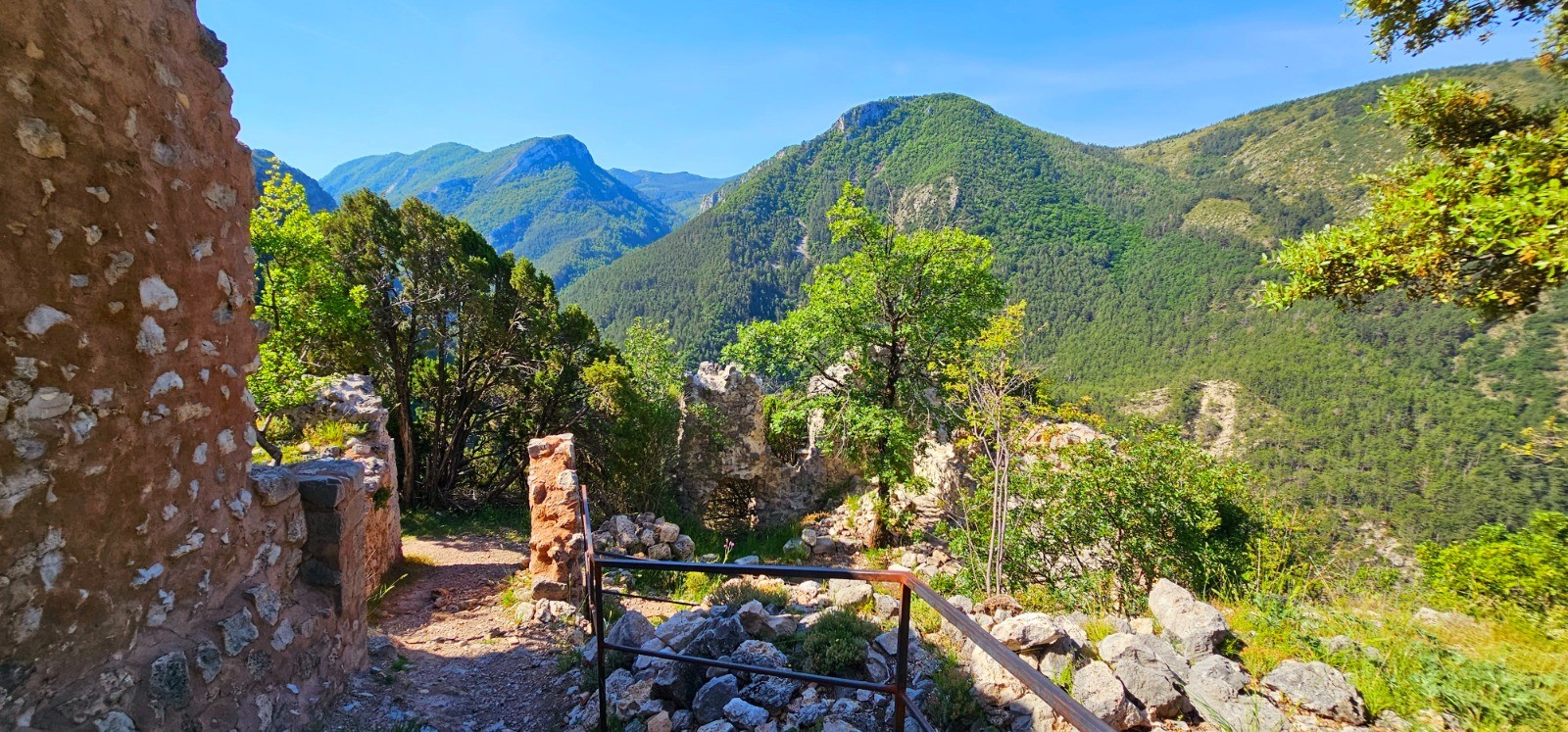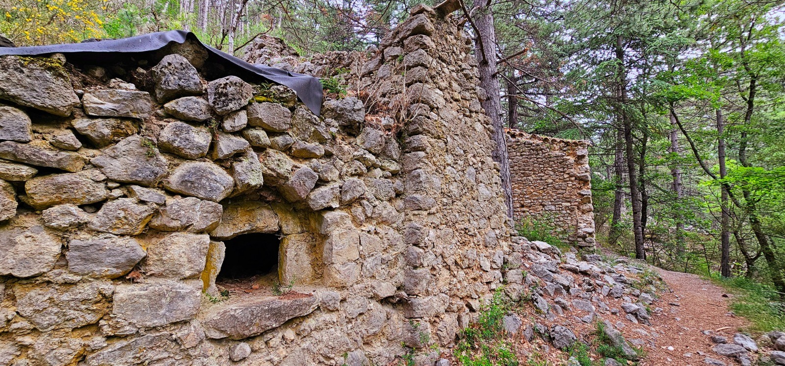 Phase retour par montée à faible dénivelé sur 3,32 km pour accéder au Belvédère des Gorges à 970 m après étape au hameau abandonné de Valbonnette et son four à pain en bordure de chemin, qui ont été partiellement rénovés. Poursuite de l'itinéraire par la forêt de Montdenier avec passage obligé par le beau site du gîte du Château de Trévans (+ ruine maison domaniale). Point d'eau avec lavoir et belle surface herbeuse aux abords, + table de pique-nique. A noter que ce gîte non gardé est fonctionnel avec 5 bat-flancs et un foyer cheminée. Descente finale sans difficulté pour rejoindre l'Estoublaïsse et le point de départ.