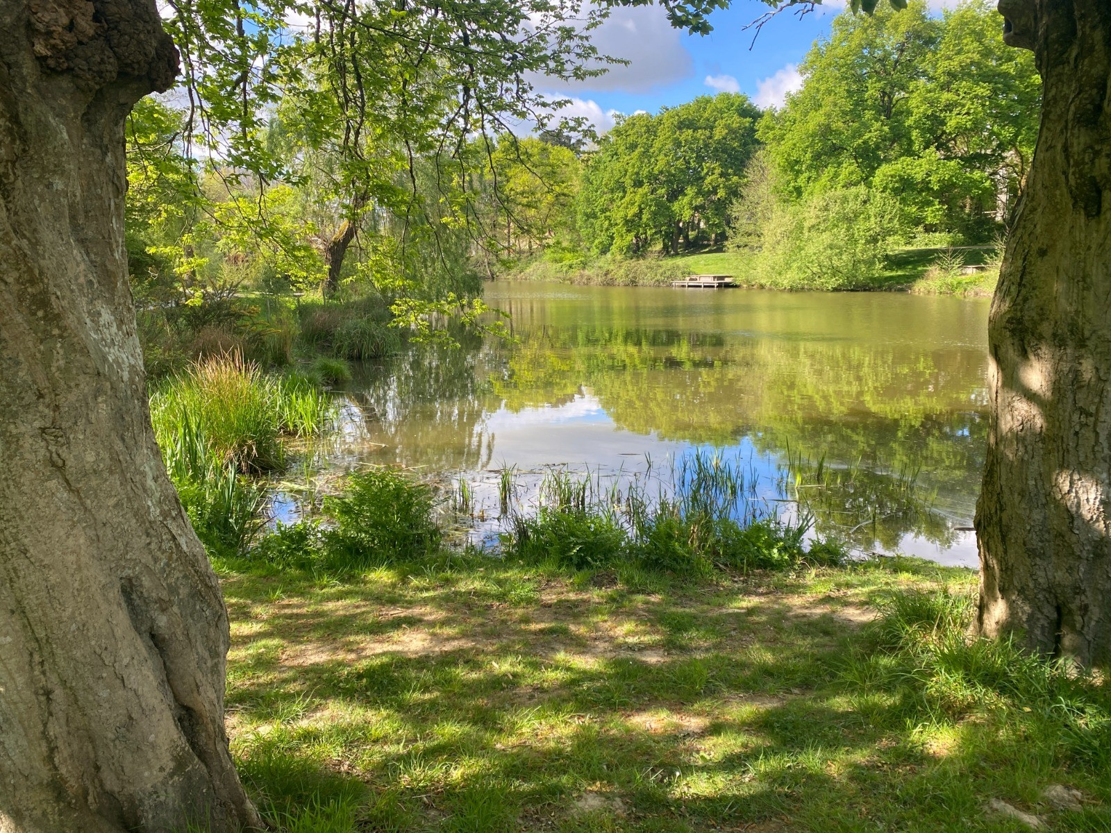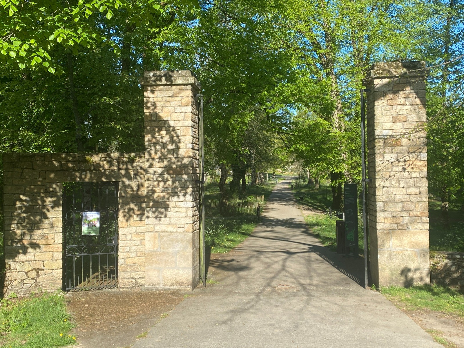 Les chemins sont ombragés, bordés d'arbres majestueux, offrant une atmosphère ressourçante.