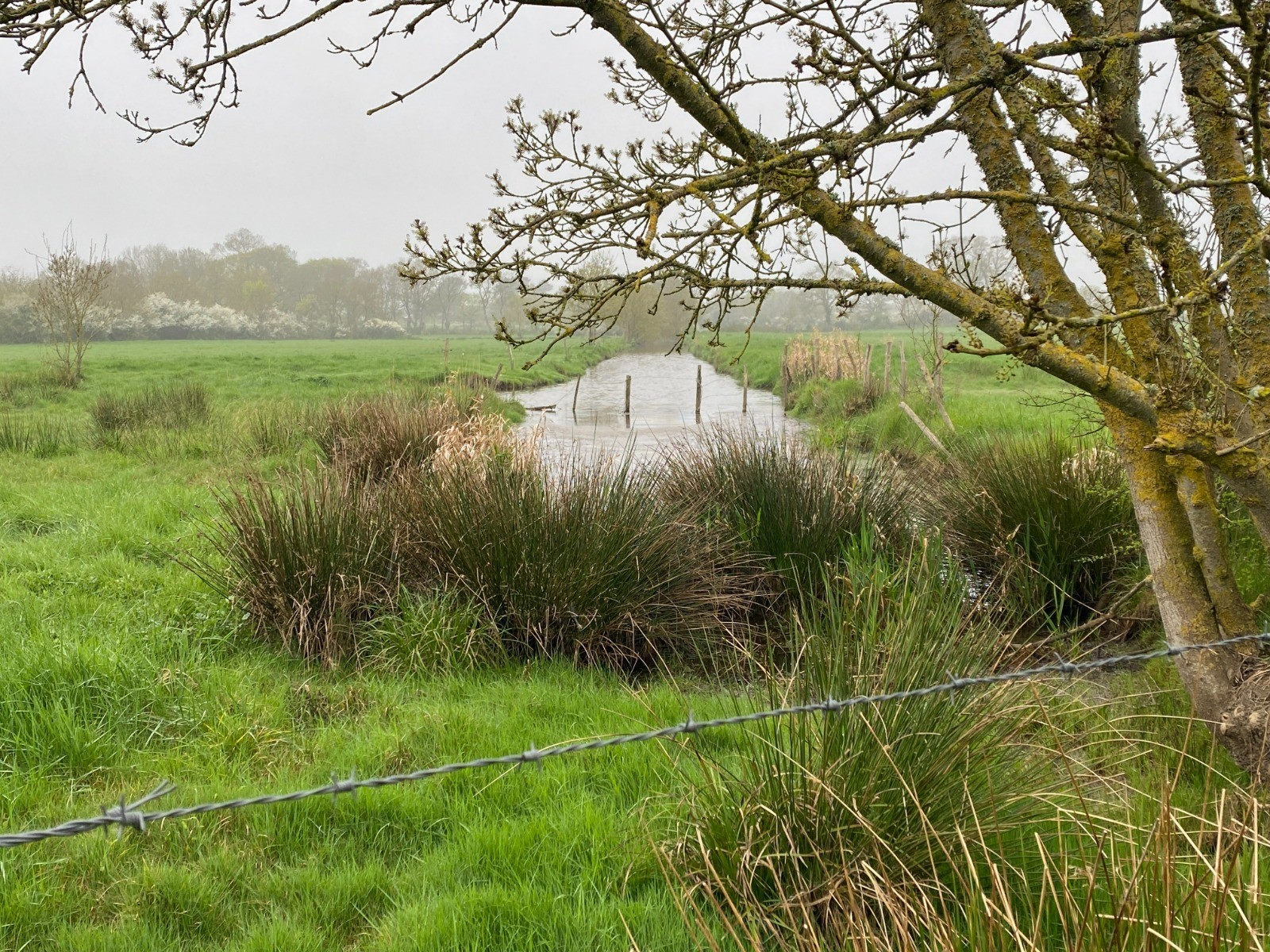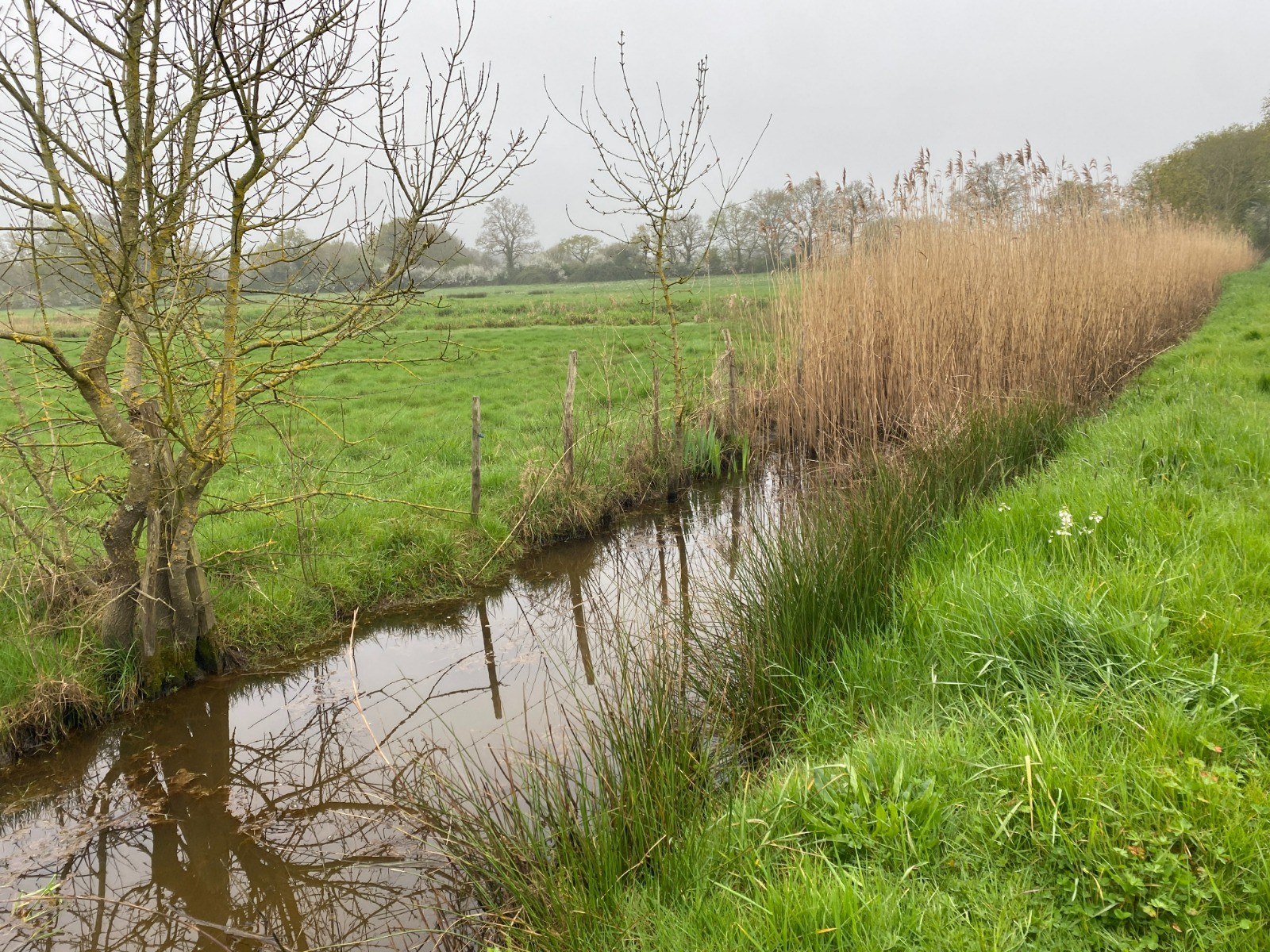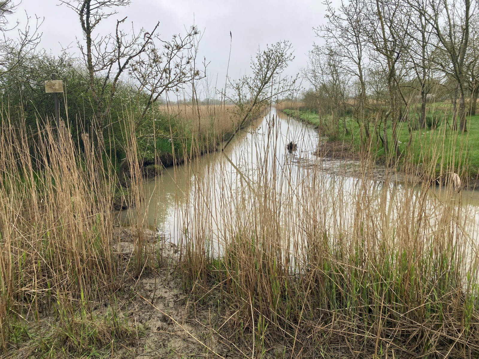 Ces sentiers sont bordés de roseaux et de prairies humides, typiques de cette région façonnée par l’eau.