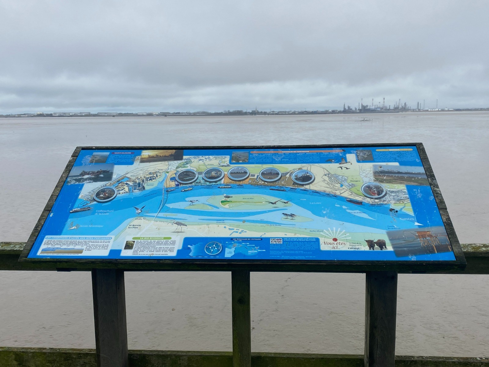 Là, le paysage change : l’estuaire s’ouvre devant vous, offrant une vue imprenable sur le fleuve avec ses industries et le pont.