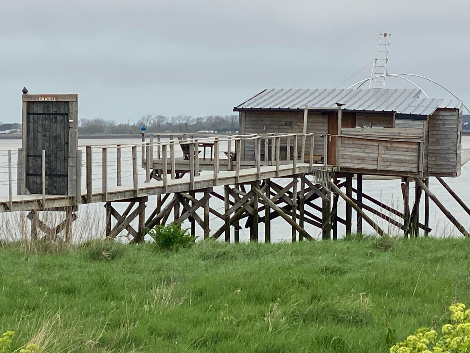 Tout doucement nous parvenons au bord de la Loire avec ses magnifiques pêcheries ( photos no 17 à 20 ) , ces cabanes sur pilotis typiques de l’estuaire, avec leurs grands filets suspendus appelés carrelets.