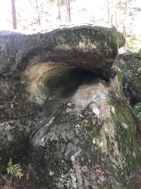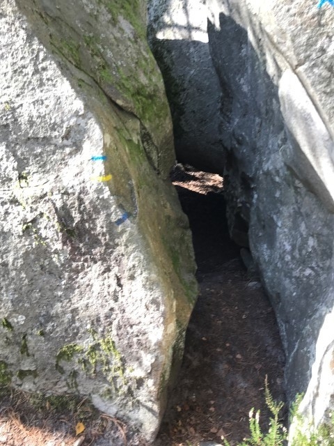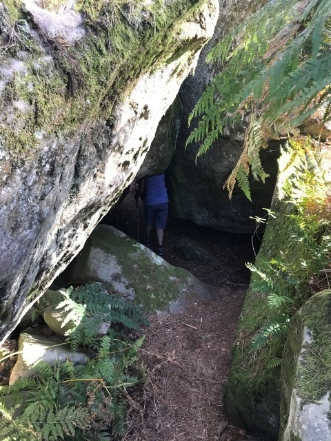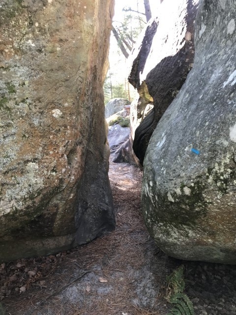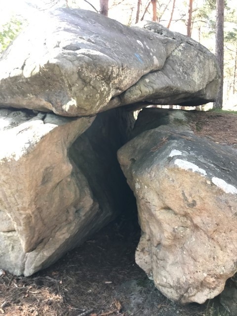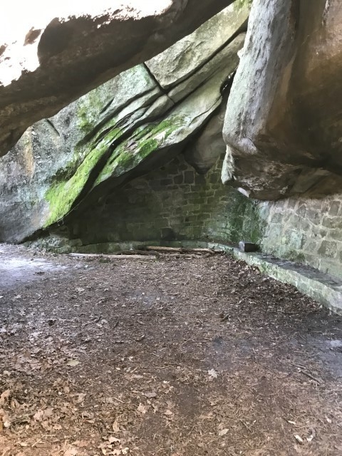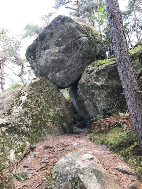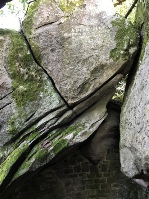 A savoir, vous passez d'abord le passage de Pierre Legrand A (créateur de Saint Petersbourg 1672-1725), plus loin laa grotte Olga E (Fille ainé du tsar Nicolas II), puis l'Arche d'Alliance F (Allusion à l'alliance Franco-Russe de 1897), la grotte de la Tsarine G (Fille ainée du star Nicloas II, l'Abri de Stoessel H (Général de l'armée Impériale Russe), L'Abri du Père Roche A ( ), Le couloir des bébés B, L'Abri du Chasseur *, la grotte du Chien *, l'abri du chevreuil *, la grotte d' Emilie et Gabrielle I, la grotte du chasseur noir H (légende d'Henri IV) voir aussi en levant la tête les inscriptions, plus loin, le passage de Carrier-Belleuse C (Sculpteur éleve d eDavid d'Angers et professeur d'Auguste Rodin, l'Antre de Judith E (Décapita Holophéne pendant son sommeil), le passage du serpent J, la station du père Guilbert K et pour terminer La Grotte du Serment (DFD) derniere folie de Denecourt, sur le parcours vous pouvez aussi voir quelques pins Weymout et bien d'autres rochers .