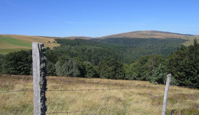 Un très long profil montant démarre alors, d'abord par un coup de cul très raide où il est possible de devoir poser le pied à terre sur une 50aine de mètres, puis dans la forêt sur des chemins roulants, puis sur les sentiers des Hautes Chaumes, pour arriver au point culminant du circuit à Pierre-sur-Haute à 1610 m (on traverse les zones d'estive : bien refermer les portails que vous franchirez).