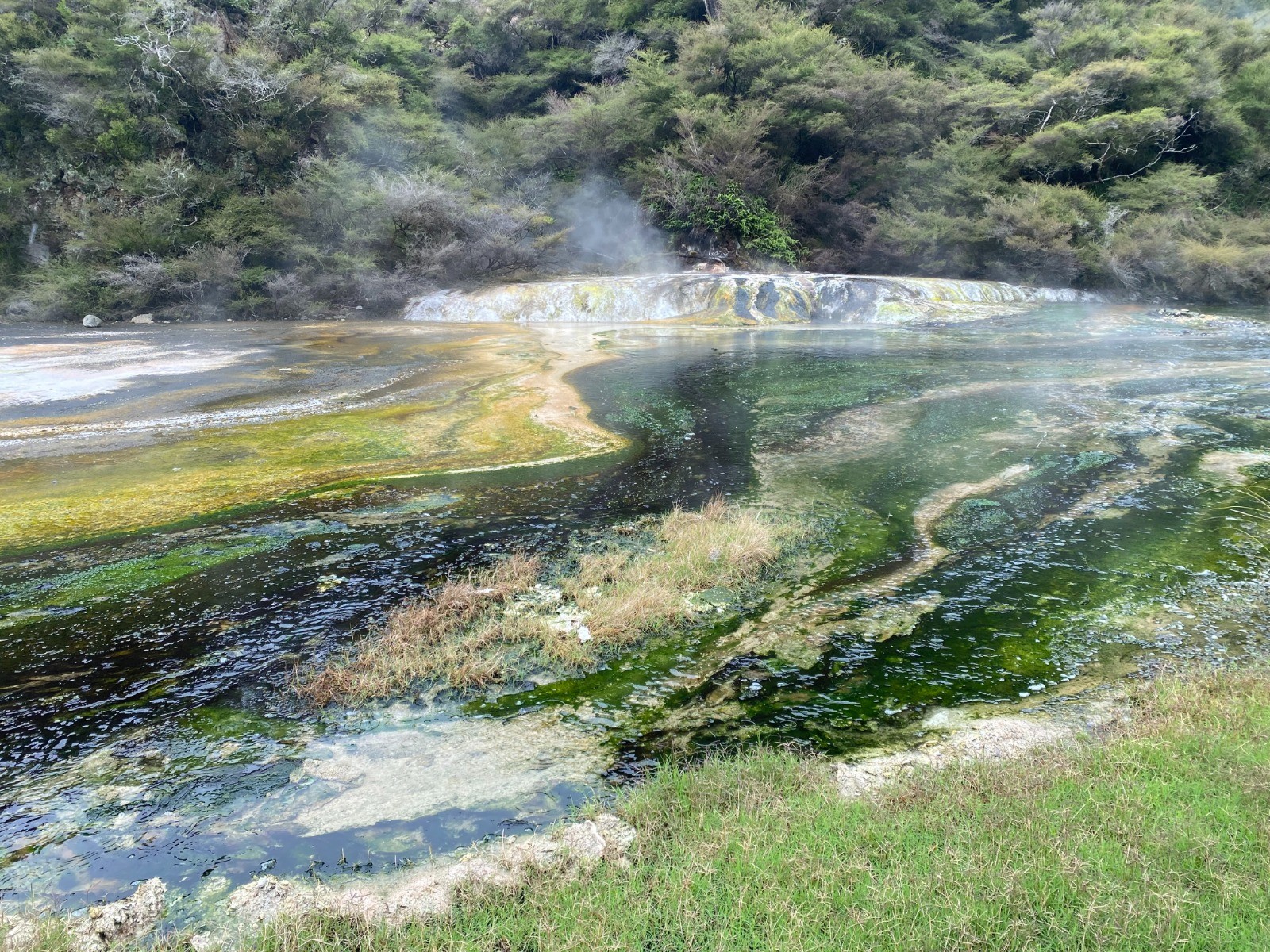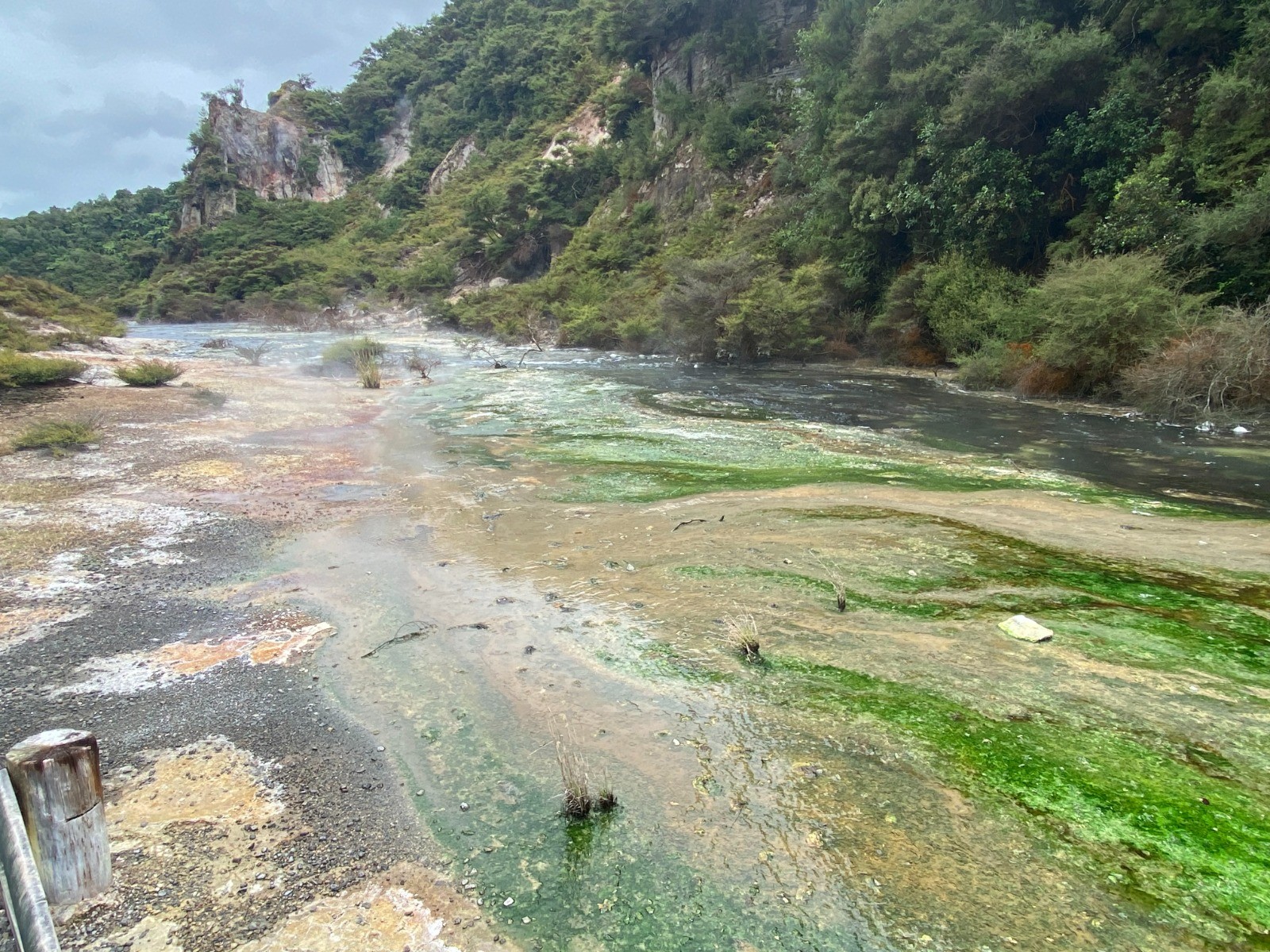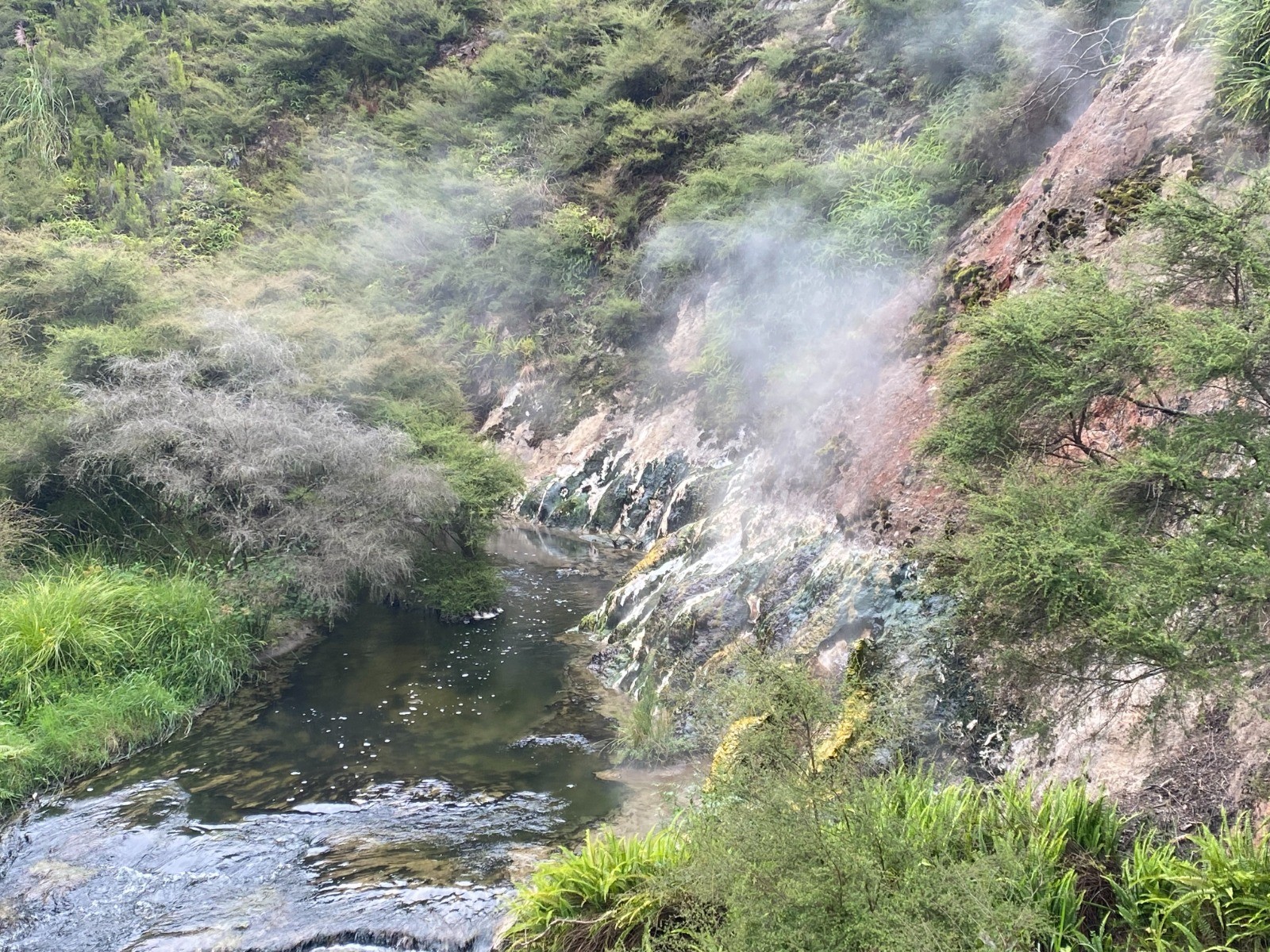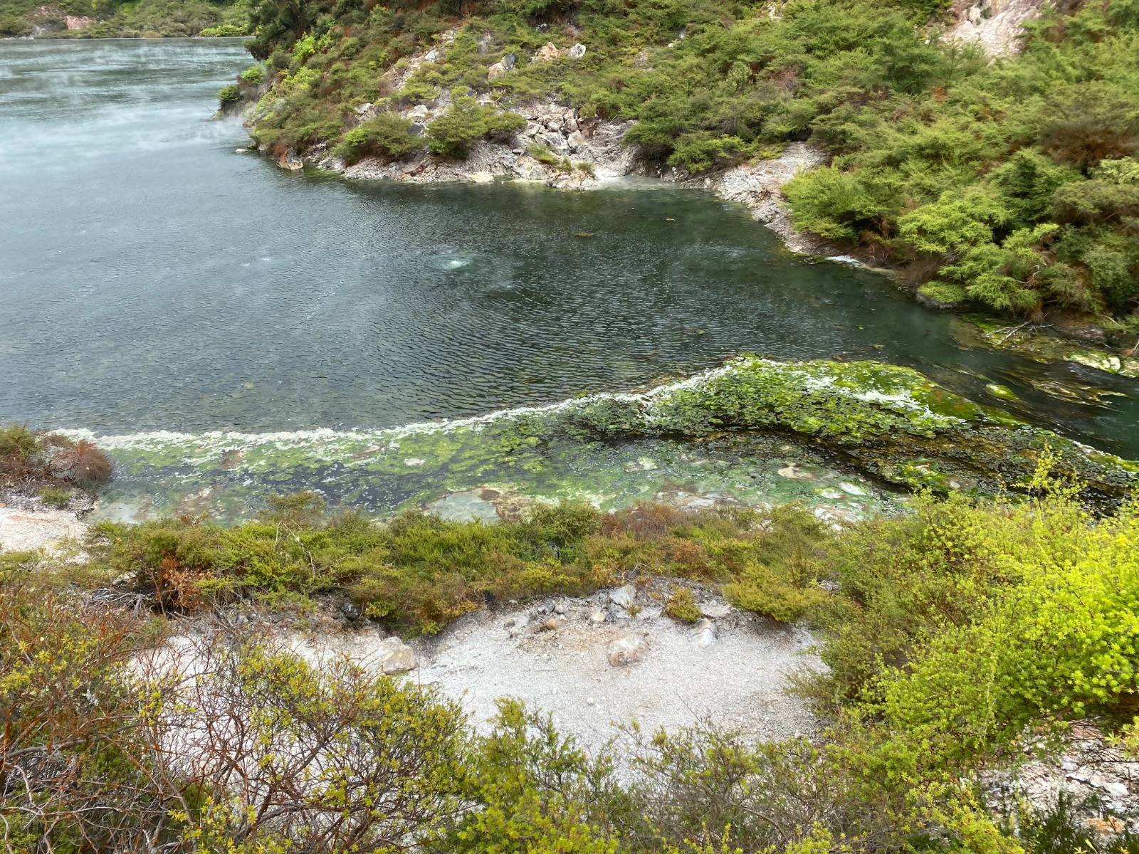 Nous commençons notre exploration de la région avec Waimangu Volcanic Valley, le système géothermique le plus jeune au monde, site que nous découvrons entièrement à pied.