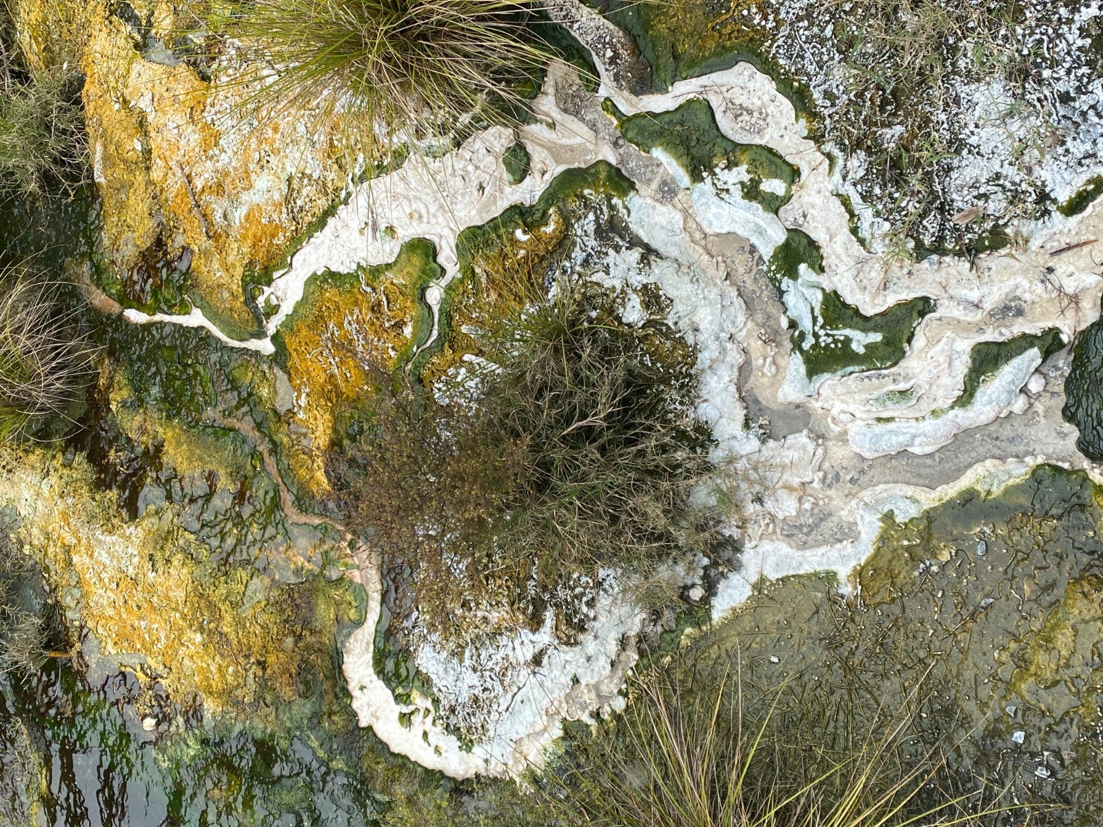 Les dépôts qui se succèdent prennent des couleurs différentes, selon les minéraux ou les algues qui les composent.