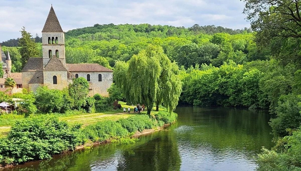 Après le pont, tourner sur la petite route à gauche pour longer le bas de la Roque ST Christophe. Attention encore à la circulation lorsque la route passe après quelques centaines de mètres dans un passage étroit entre la Vézère et la falaise, à hauteur d'une chute d'eau. Vous passez ensuite devant le parking du site de la Roque St Christophe (https://www.roque-st-christophe.com/) puis vous allez prendre un chemin sur la droite dans le virage. Suivez le circuit jusqu'au village de Payzac, pour prendre un long chemin dans les bois jusqu'au hameau du Béarnais, pour prendre ensuite sur la gauche le GR jusqu'à Saint Léon sur Vézère. Après avoir passé le pont, prendre sur la gauche, puis encore à gauche pour passer sous le pont et suivre les rives de la Vézère, en passant devant la superbe église romane du XIIème siècle. continuer le long des rives, puis revenir sur Saint Léon. A hauteur de la chapelle du cimetière, prendre à droite, traverser la D706 (attention à la circulation) et monter jusqu'aux crêtes pour suivre un long chemin de castine, puis un chemin sur la droite qui mène à la tour de la Vermondie. Arrivé sur la route à l'entrée de la Vermondie (attention), prendre le chemin qui descend en face, puis tourner sur la droite pour longer le parc paysager. Descendre ensuite un chemin très caillouteux.