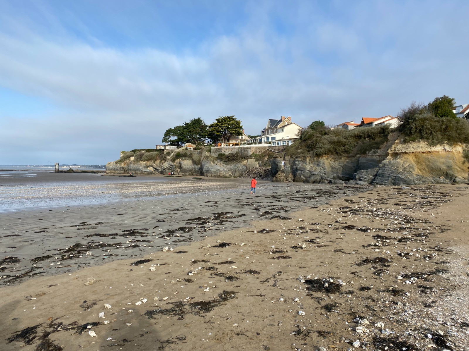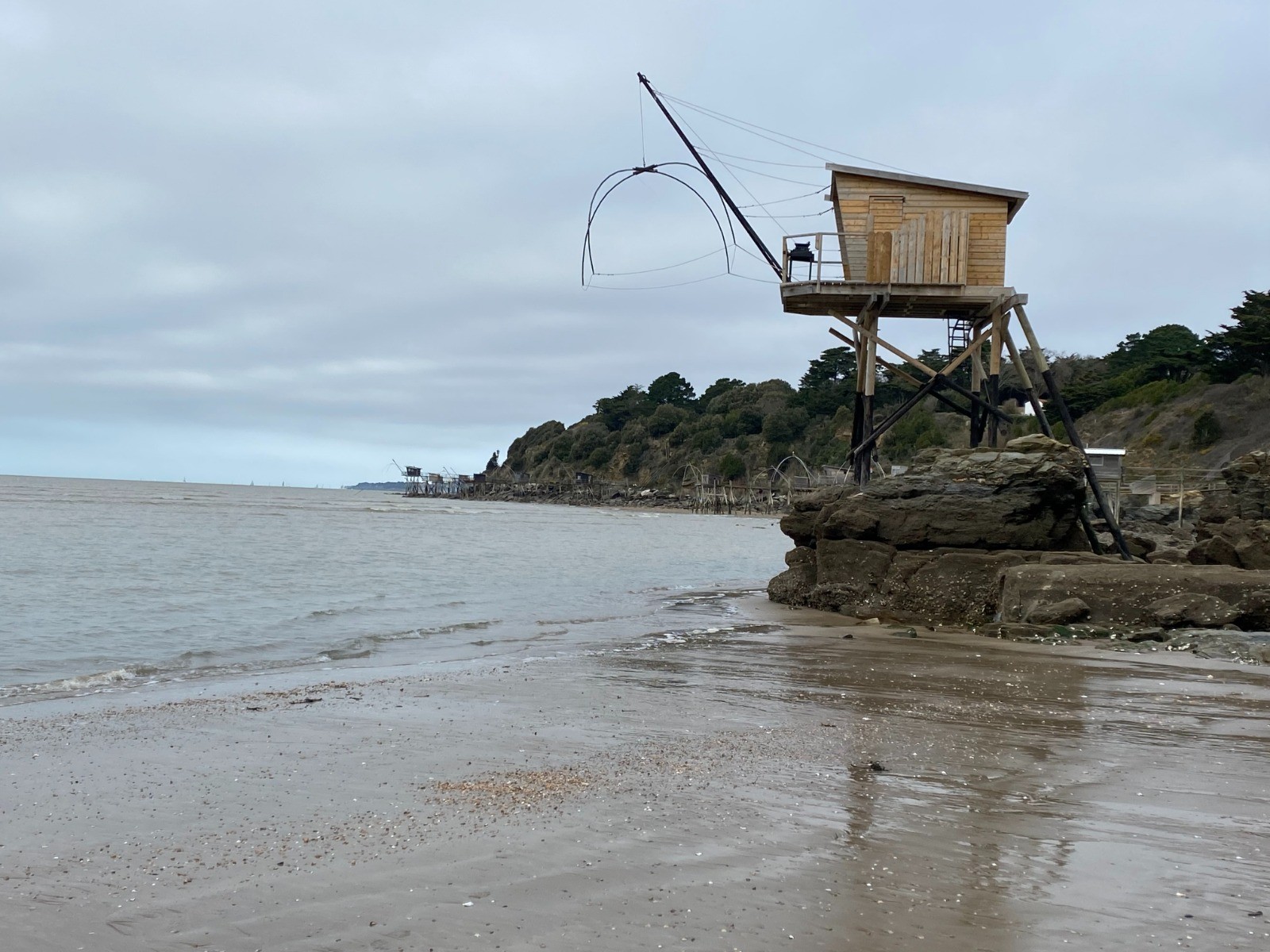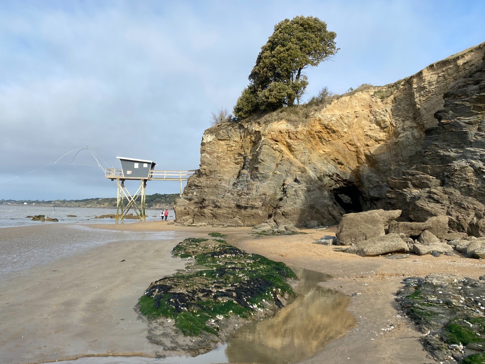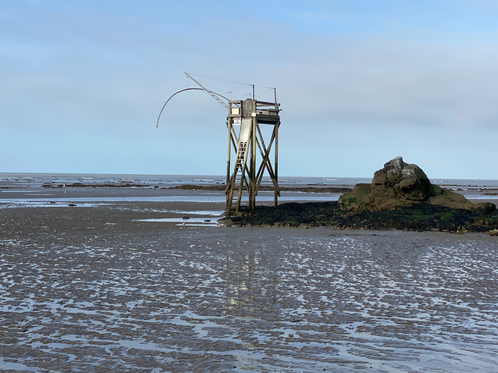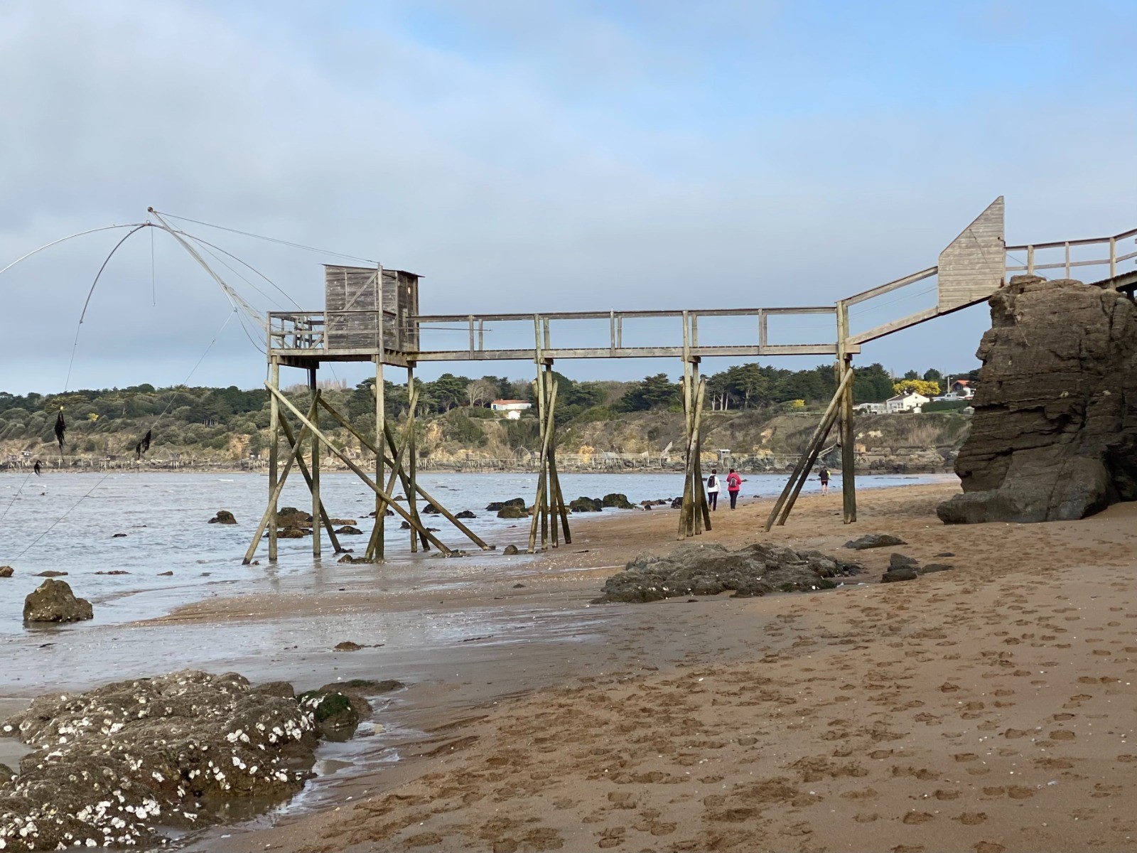 La marée ( horaires ) est montante depuis seulement deux heures et cela nous permet de nous diriger jusqu'à La Boutinardière en empruntant la plage, slalomer parmi les rochers et passer au pied des pêcheries nombreuses ici.