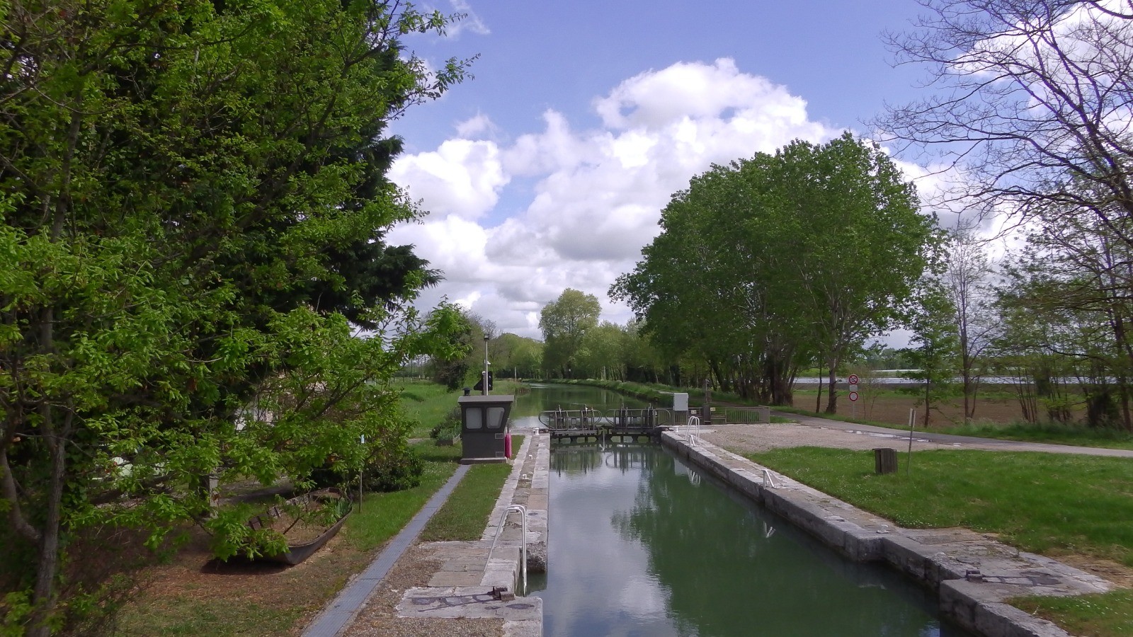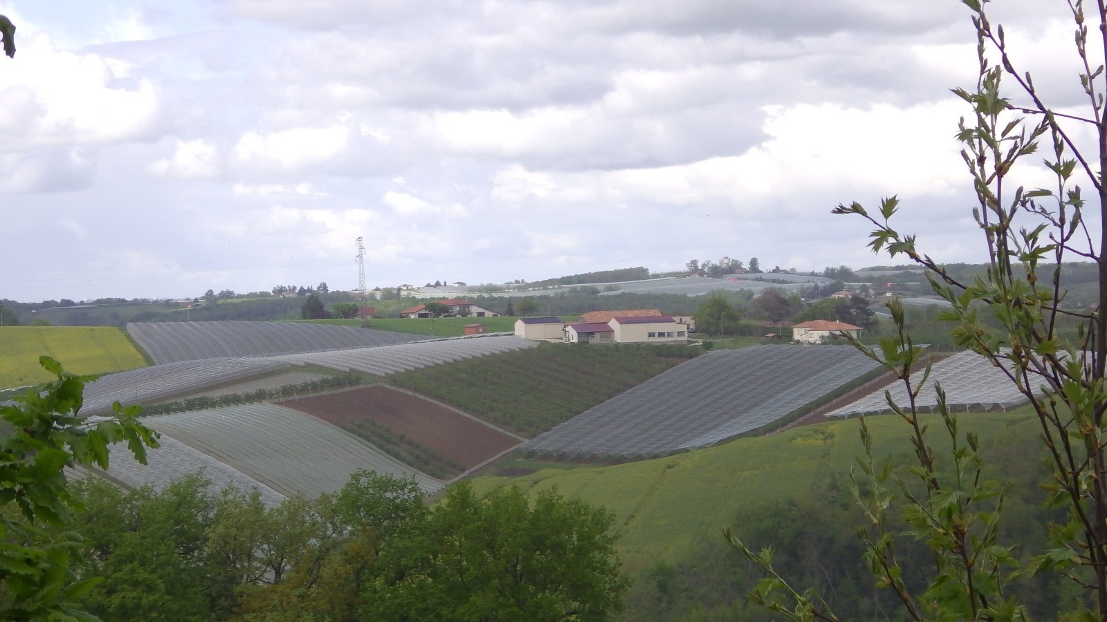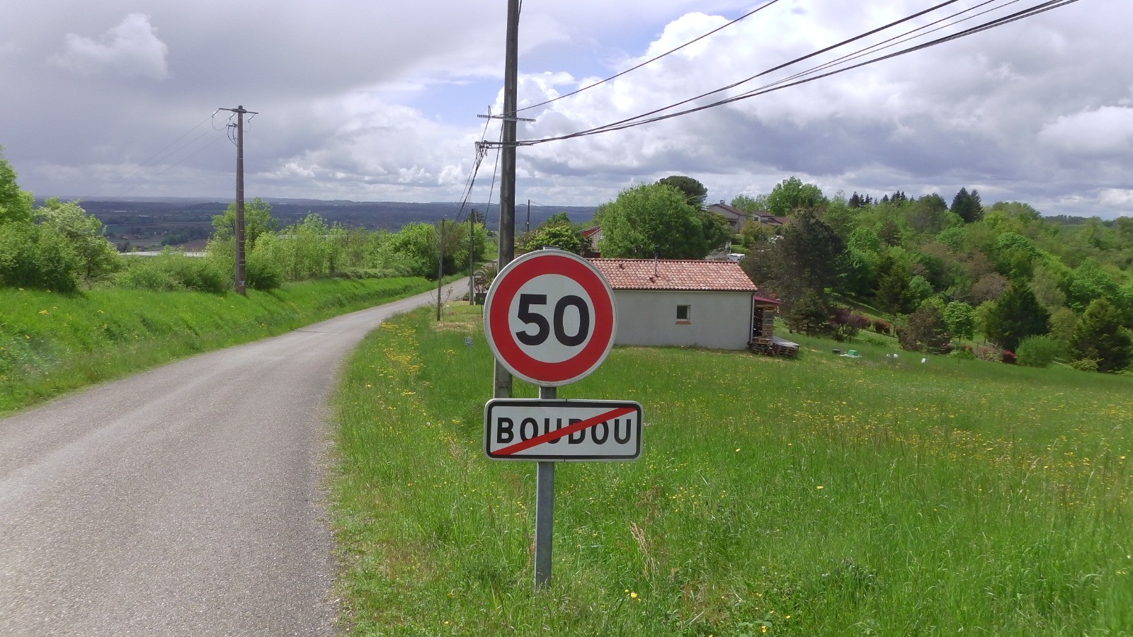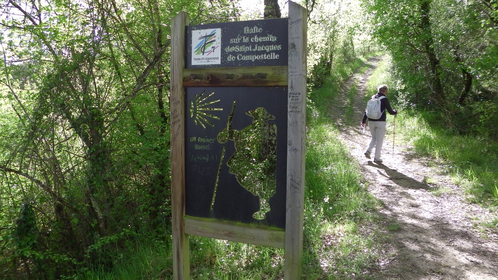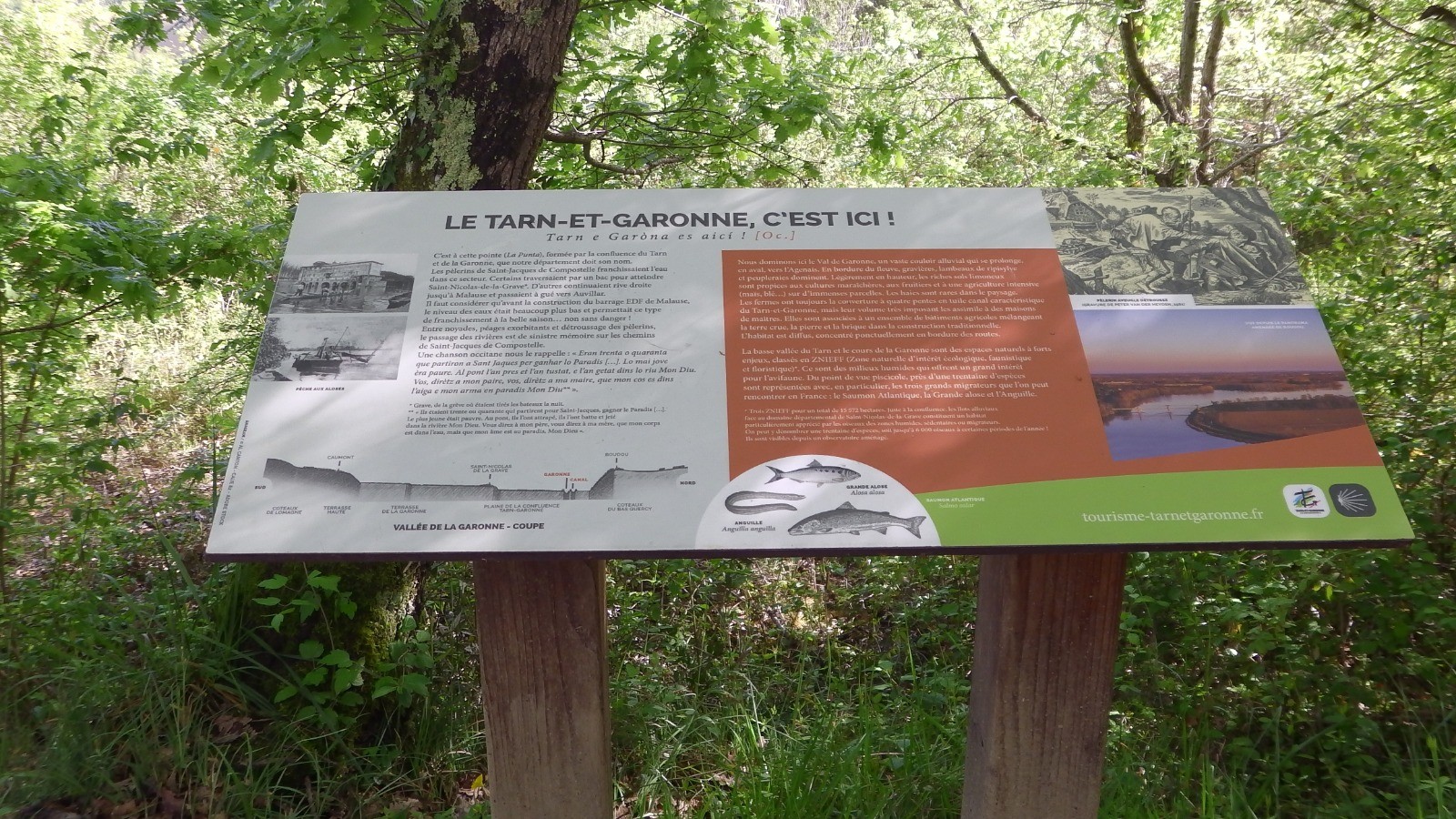 Après un passage à la table d'orientation qui domine la vallée et la base de loisir, le chemin balisé PLONGE vers la vallée et après la traversée de la route et des rails mène à une écluse. Une voie de service longe le canal, passe sous le pont qui mène à St Nicolas de la Grave et à la base nautique. Après la seconde écluse, il faut prendre la route à gauche (attention aux balisages qui se mélangent) qui monte vers La Roquette. A Pinette, à la dernière maison, un petit panneau jaune invite à descendre ... à pic le long d'une pâture où paissaient des poneys le jour de notre passage. En bas un peu de route et un chemin qui part sur la gauche pour MONTER (panneau informant que la montée est super HARD) vers Boudou.