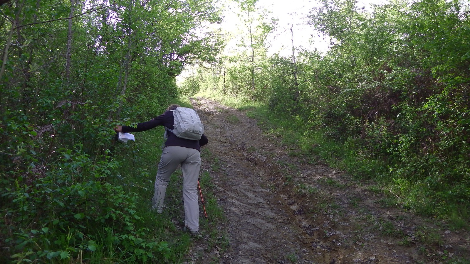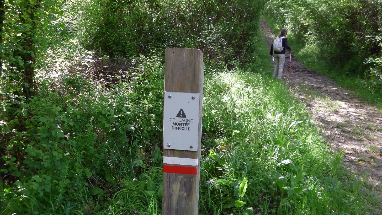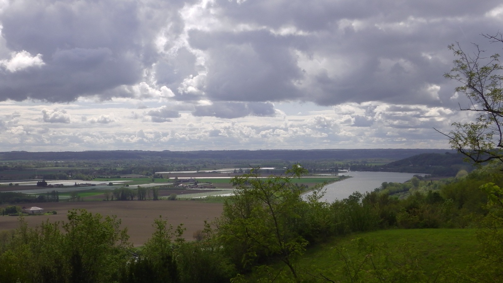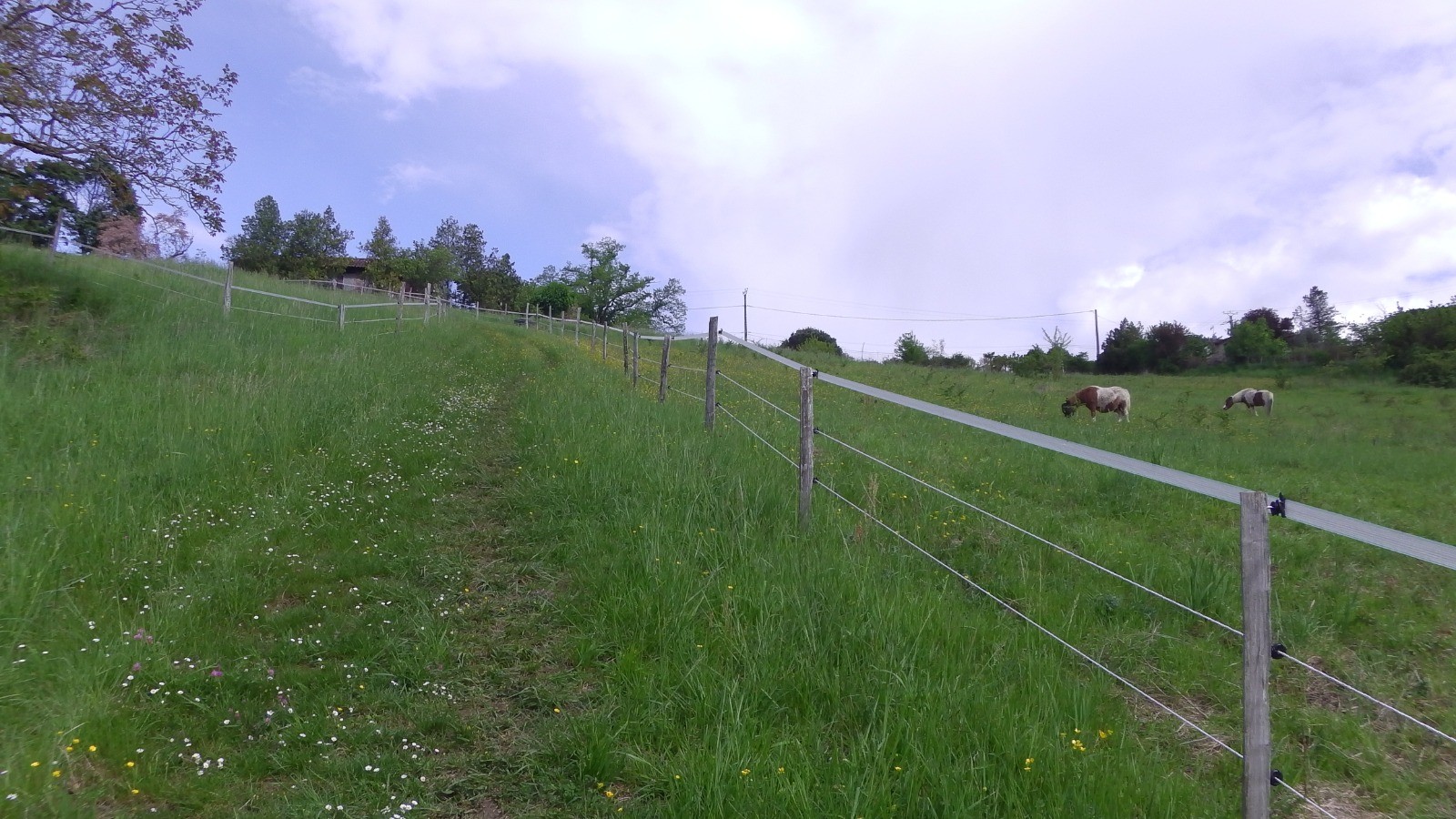 Après un passage à la table d'orientation qui domine la vallée et la base de loisir, le chemin balisé PLONGE vers la vallée et après la traversée de la route et des rails mène à une écluse. Une voie de service longe le canal, passe sous le pont qui mène à St Nicolas de la Grave et à la base nautique. Après la seconde écluse, il faut prendre la route à gauche (attention aux balisages qui se mélangent) qui monte vers La Roquette. A Pinette, à la dernière maison, un petit panneau jaune invite à descendre ... à pic le long d'une pâture où paissaient des poneys le jour de notre passage. En bas un peu de route et un chemin qui part sur la gauche pour MONTER (panneau informant que la montée est super HARD) vers Boudou.