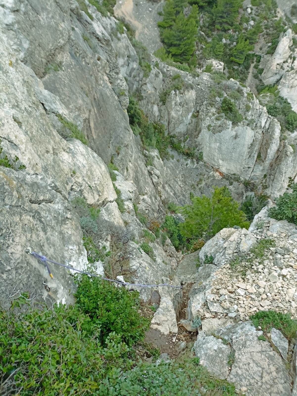 Passage très difficile pour sortir du Cirque. Une corde est en place pour vous aider au cheminement. Par temps de pluie. Eviter cette randonnée. Autrement si vous avez le pied sur. C'est une belle randonnée avec des vues magnifiques sur les Calanques et l'ensemble du massif.