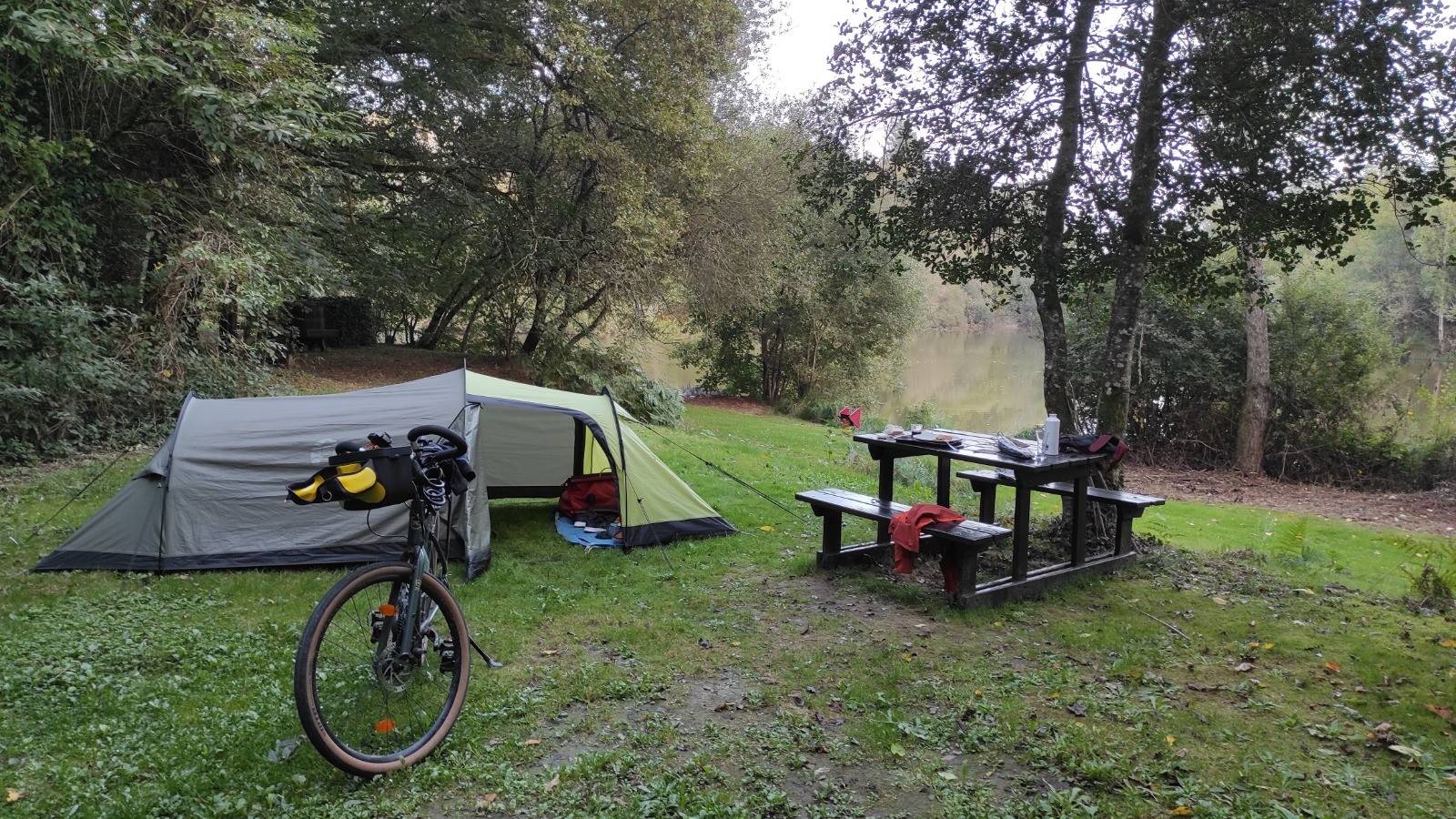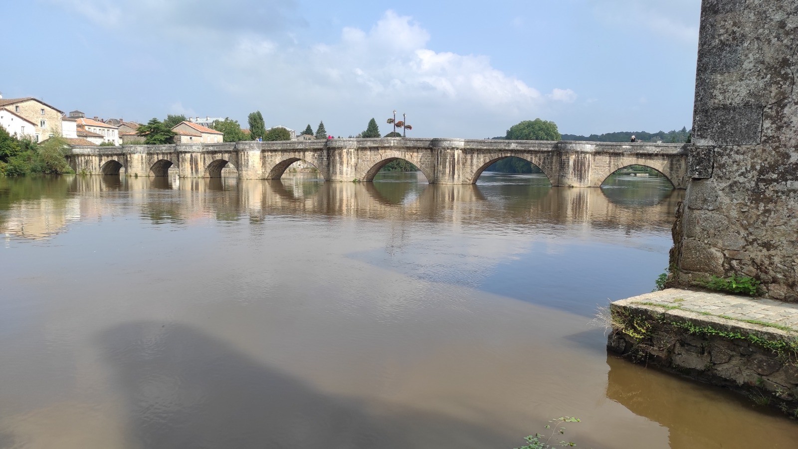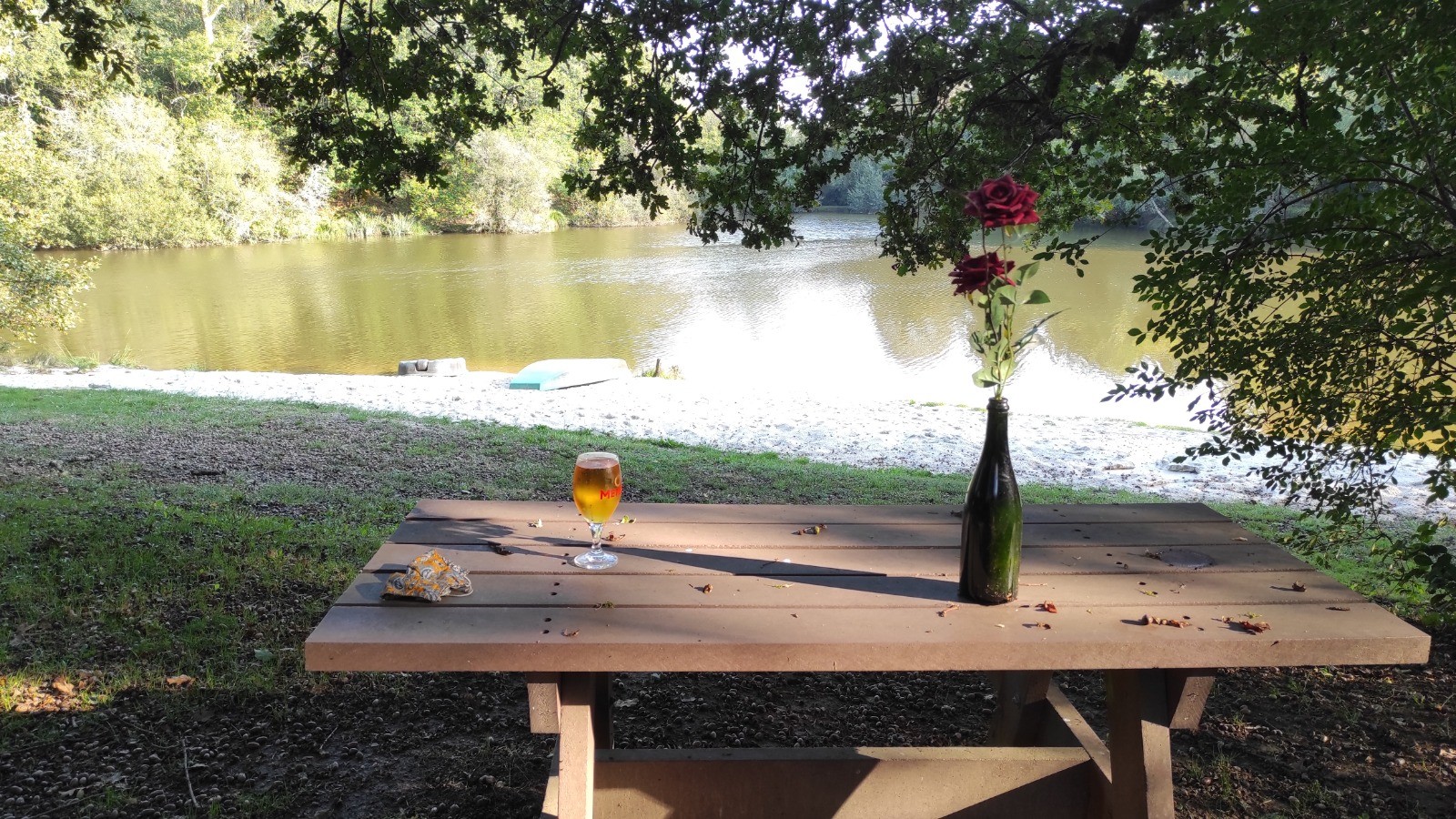 Picnique à Confolens et après c'est le désert. Galère pour trouver un café, et ça monte, ça monte. L'itinéraire bifurque sur Excideuil. Dans un bled en ac, pas Chirac, un ot dans lequel je m'enquiére d'un camping. Google fait mieux et je dévie ma route. Bon, là Google fiat pas mieux et m'envoie dans un chemin de terre qui aboutit dans une propriété privée qu'il faut traverser. Demi-tour. J'arrive enfin dans un superbe lieu au bord d'un étang ou la patronne m'a promis malgré la fermeture du restau le mardi un plat à emporter. Le rêve.