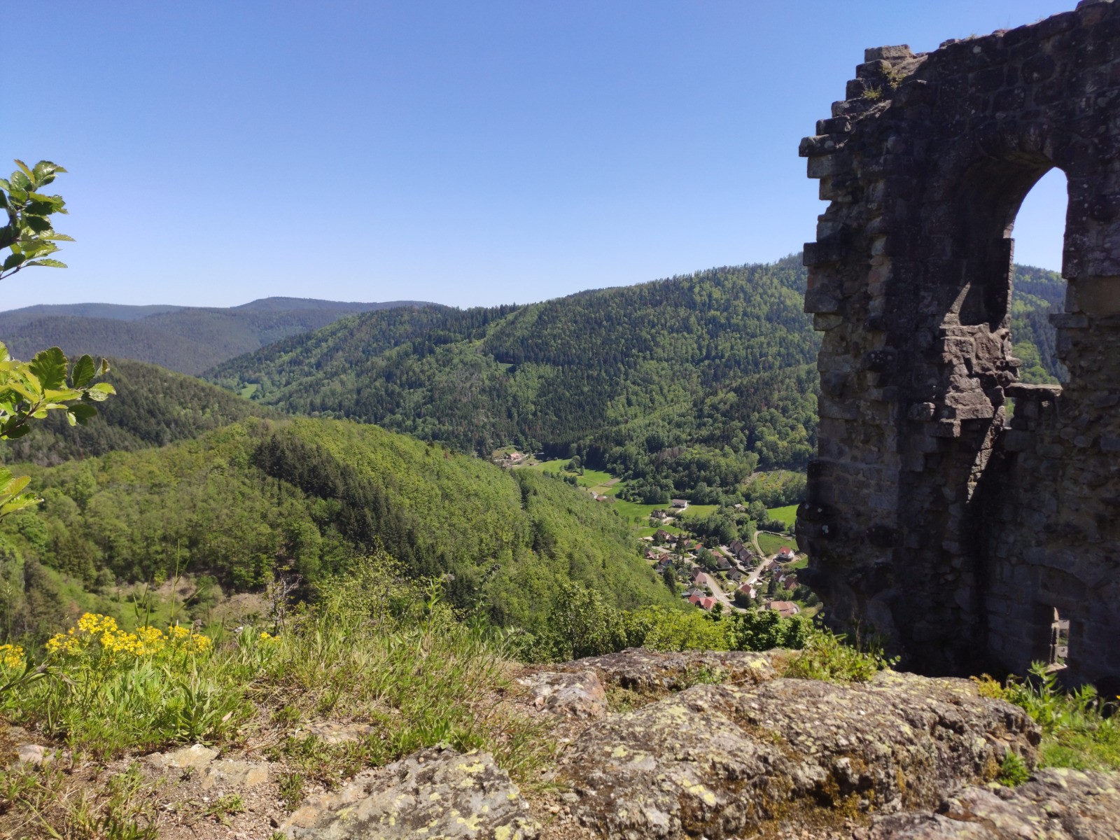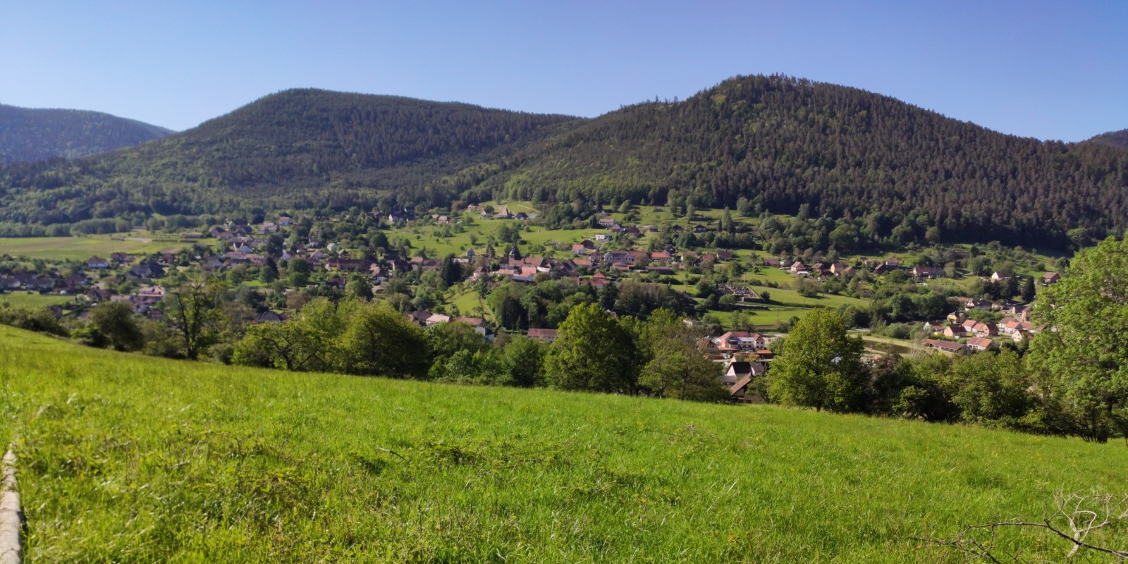 Lalaye (place Jean-Louis Guiot) - [GR532] - Honel - [GR532] - Blanc Noyer - Pransureux - Le Vieux Pré - Route des Crêtes (D214) - D156 - Harchangoutte - château du Bilstein - Grande Bollée - Charbes - Vieux Moulin - Lalaye