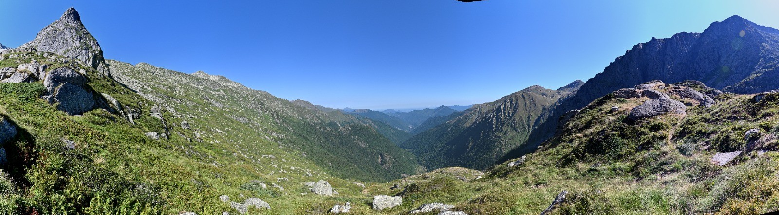 Au niveau de l'étang ( à peu près inaccessible car il est ceint de parois raides ), pour continuer l'itinéraire, il faut rester au bas du déversoir ( on ne voit pas l'étang de là ) et suivre le sentier Nord-est. Une montée permet de franchir la première arête sur sa partie haute, puis une descente à travers des éboulis ( fatigante - il faut naviguer entre des roches de différentes tailles et garder un bon équilibre) conduit à franchir la seconde arête en partie basse.