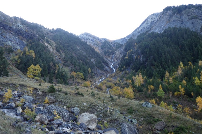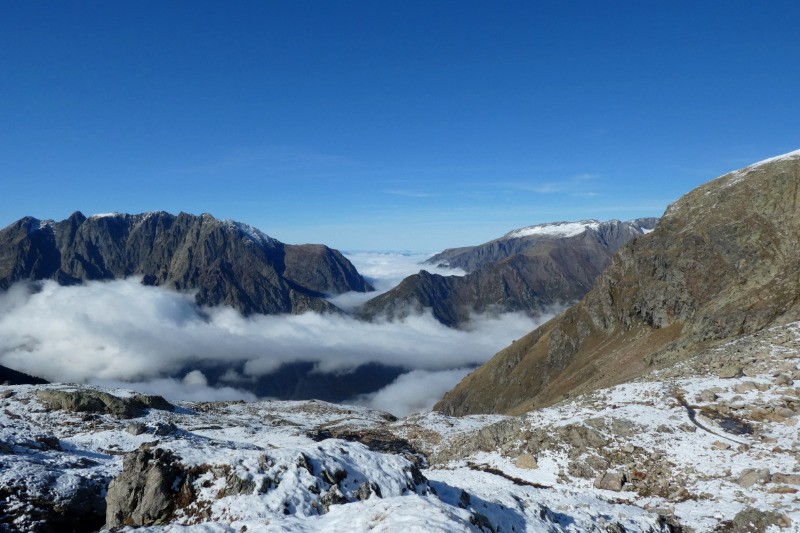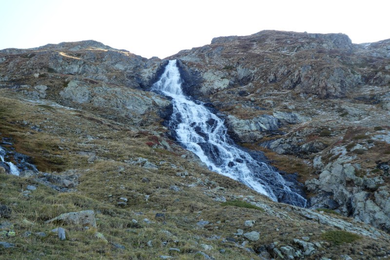 Superbe lac des Écrins, niché sous le Rochail. Un peu de neige au rendez-vous !