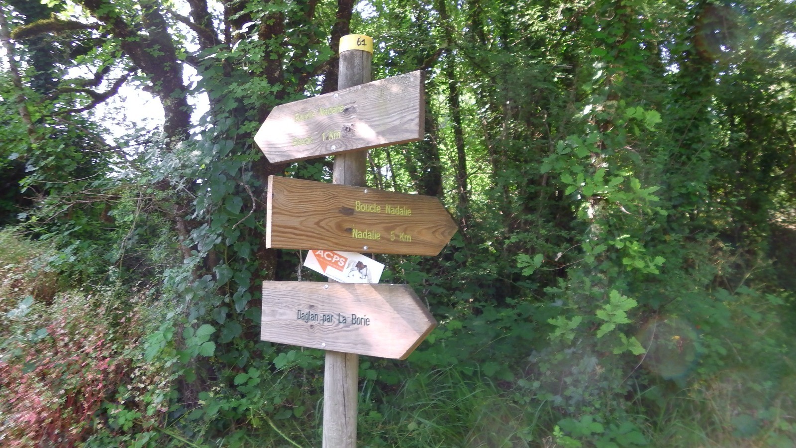 Le balisage est bien visible mais j'ai modifié deux fois le circuit (chaleur ... !) : 1) Avant Nadalie, direct vers Fordon et 2) après les Sept Frères, il existe un sentier qui mène , à l'ombre, directement à la résurgence qui produit l'eau pour Bouzic; après une belle cazelle, un sentier part sur la gauche, débouche sur la piste d'un terrain de cross, le suivre à gauche, passer au bas d'un pré et entrer dans le bois ... le sentier mène directement à la résurgence captée.