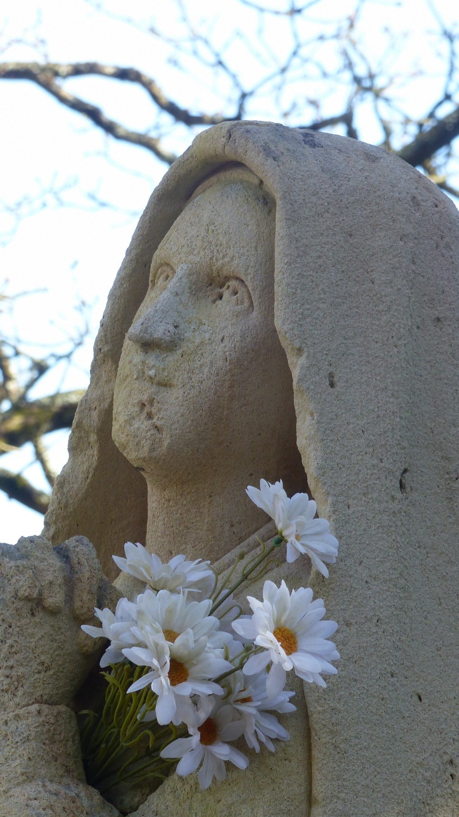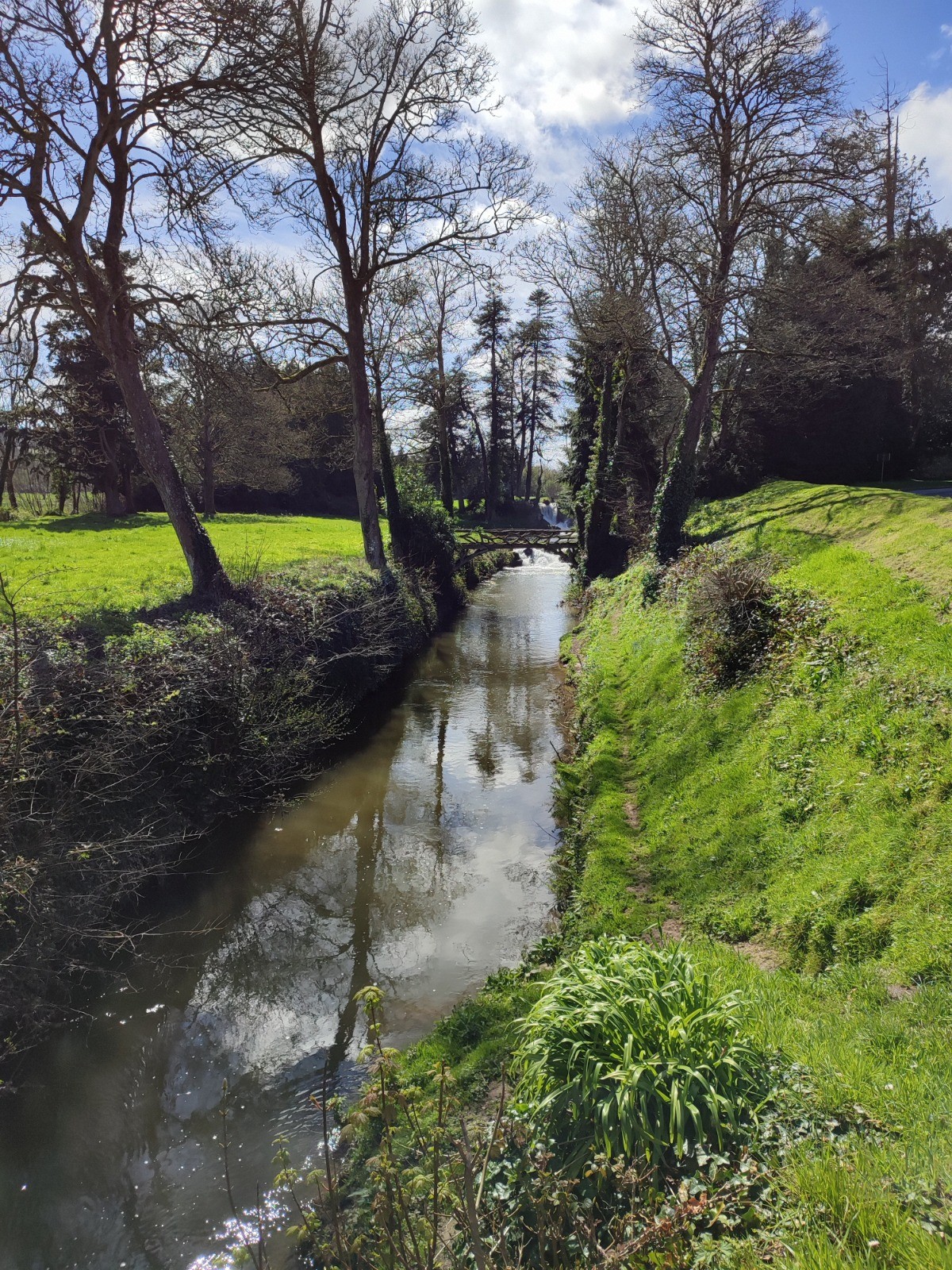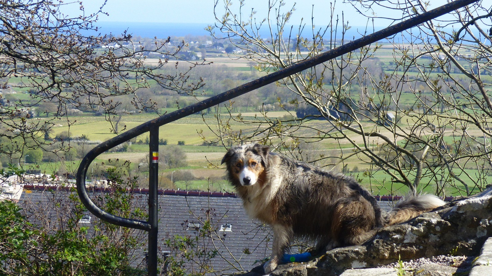 www.visugpx.com/RSYB2E8k8L mais je me suis très vite écarté du chemin. Et dès le premier écart, c'est l'aventure ... une barrière que Savane n'a pu sauter (j'ai du la prendre dans mes bras pour la faire passer alors que je l'enjambais sans peine). Second écart pour passer devant le manoir d'Ourville ... quelques vaques et bonjour au chatelain ! Aucun souci ... De là, on récupère le Hameau Enault sans problème et on suit notre ancien parcours jusqu'à La Pernelle, son église, son restaurant Panoramique, sa toute mignonne mairie, le panorama puis on descend quelques marches pour retrouver la mini grotte de Lourdes ... Pause pique-nique !